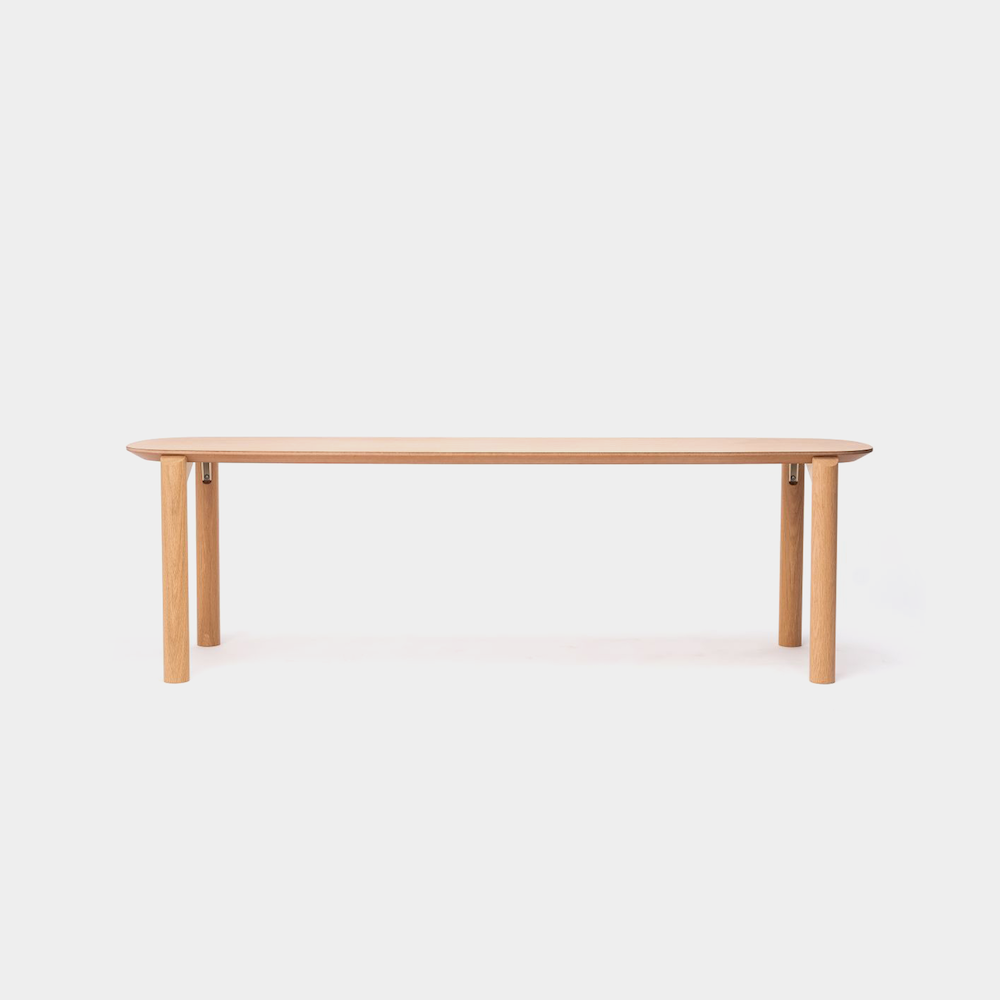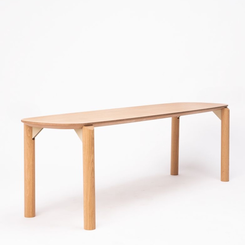 The collection of Juno tables has soft and round shapes that reinforces its character. With delicate, balanced and expressive proportions, this is a collection designed to dialogue and adapt to any environment in a friendly, integrated and honest way. The family consists of low tables and fixed and extendable dining tables available in different sizes and table top materials, Stained Oak base.