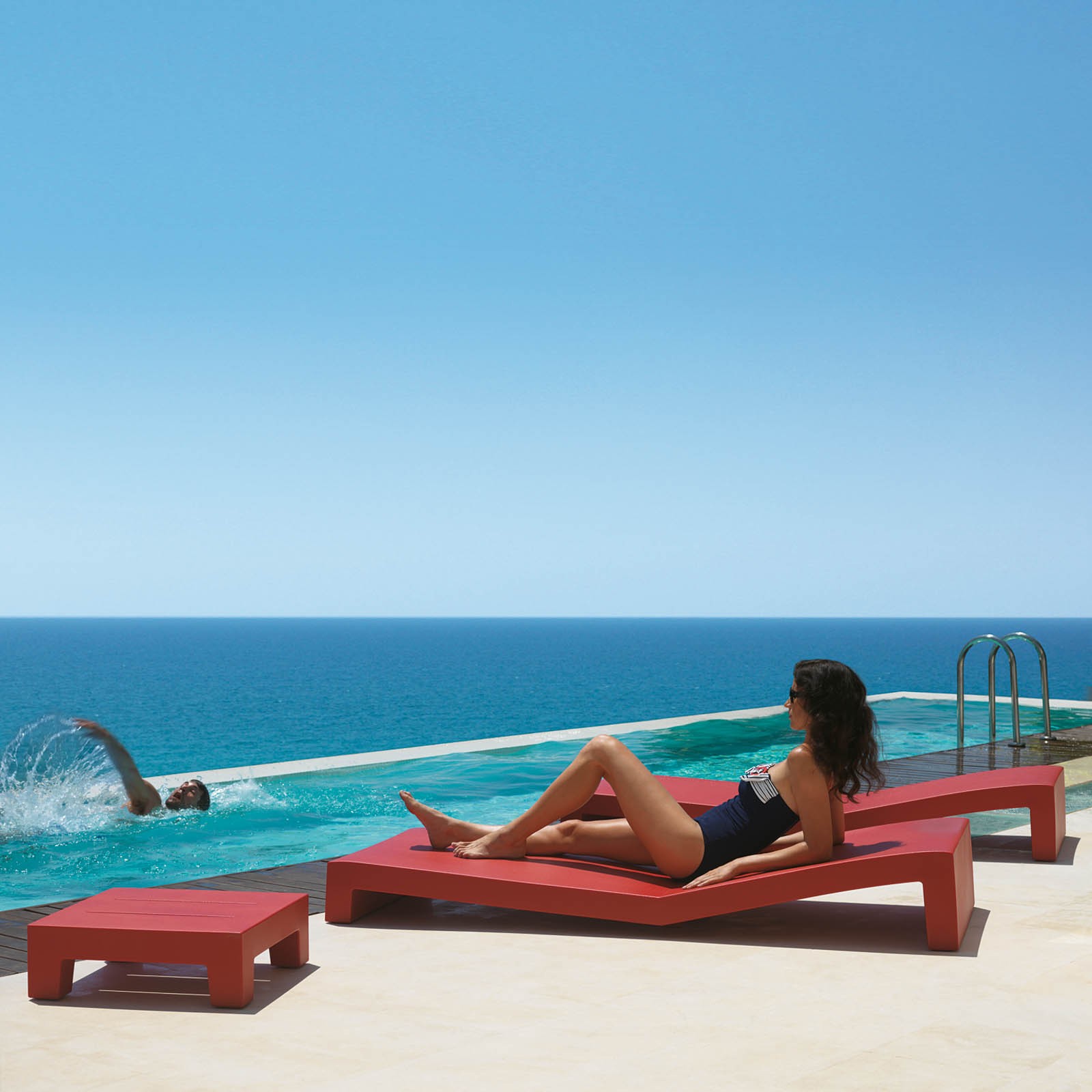 The Jut Sun Lounger by Vondom is a sleek and contemporary outdoor lounger designed for modern living. With sharp geometric lines and a minimalist profile, it offers both style and comfort in any outdoor setting.