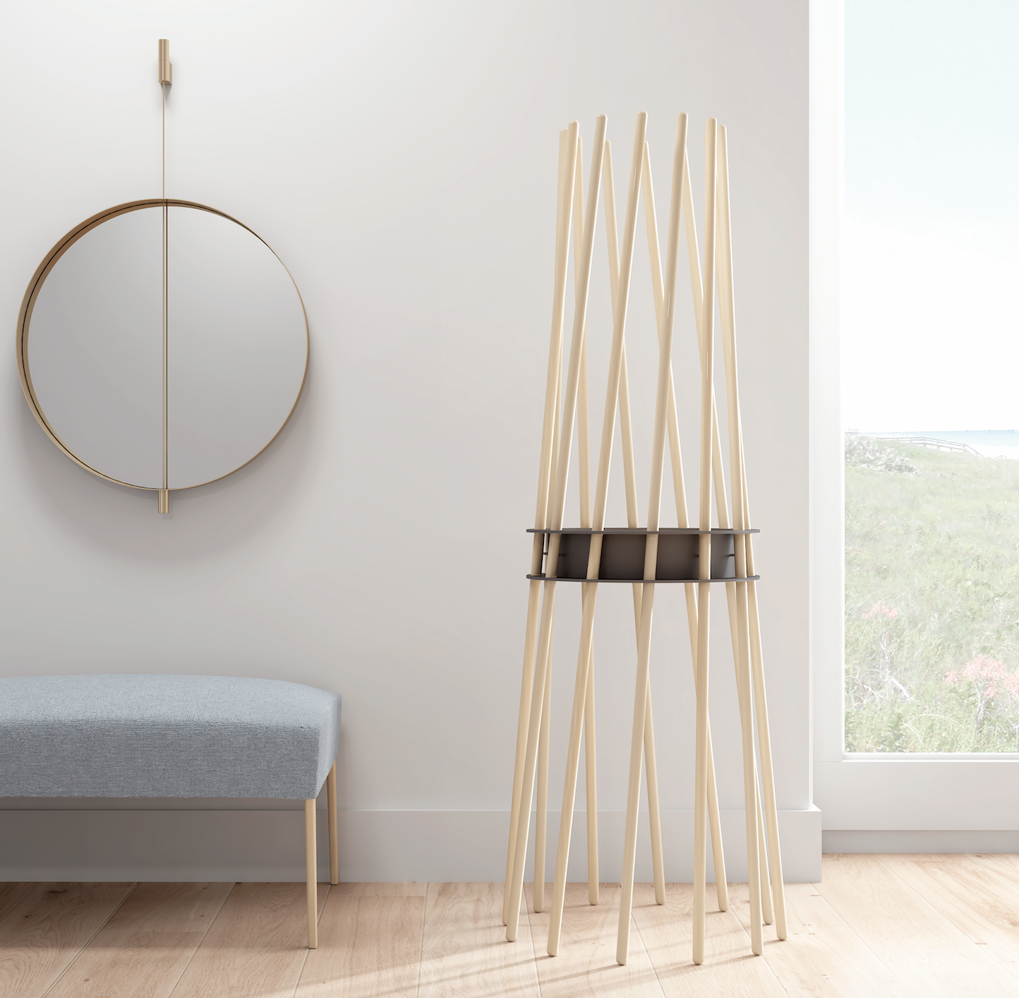 Exclusive coat stand formed by beech wood bars and a steel ring, painted in several colours.