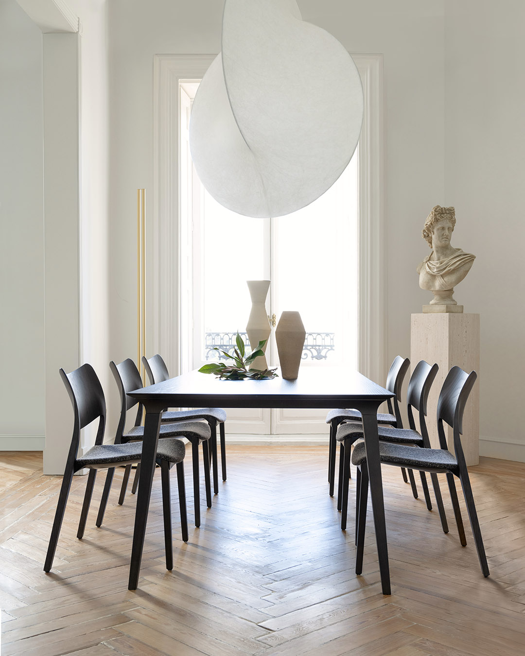 The Laclasica Chair by Jesús Gasca seamlessly blends the traditional elegance of classic wooden chairs with contemporary design elements. Its curvy, fluid form mimics the human body, exuding both sensuality and comfort. Crafted from 3D plywood, the seat and back merge effortlessly with the wooden legs, creating a sleek, unified silhouette. Beneath the seat, a discreet aluminium component enhances the chair’s structural strength while maintaining its aesthetic appeal.