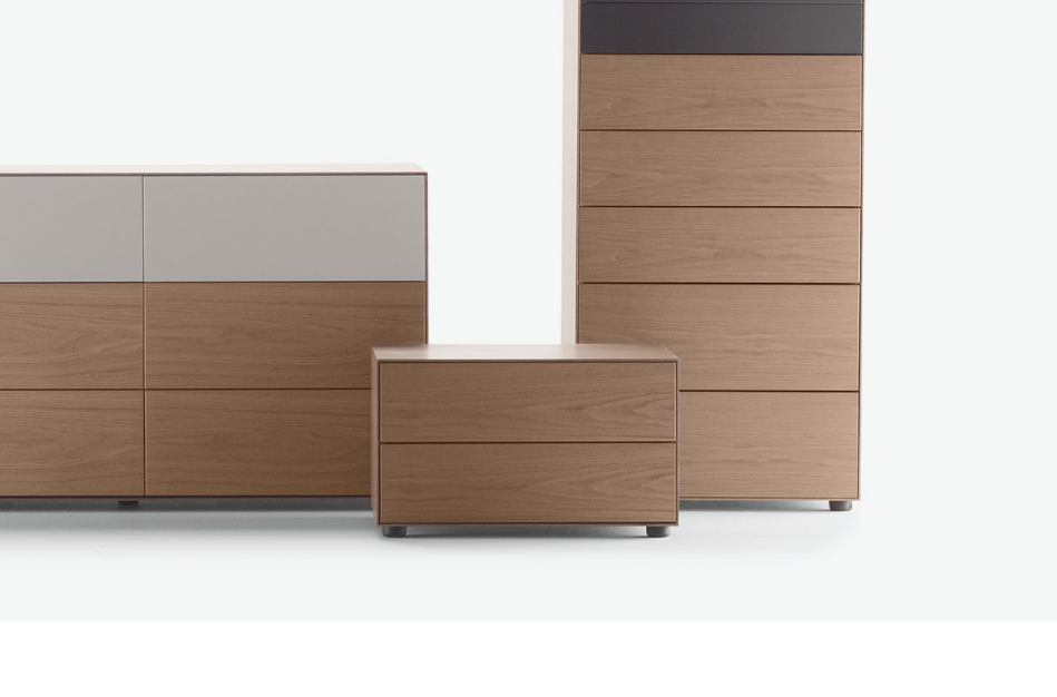 Lauki is a unique range of sideboards and bedside tables, where endless configurations in terms of sizes, shapes and finishes can be arranged. The elements that identify the collection are the 0.5 cm profile that surrounds the perimeter of the cabinet and the push-to-open system in the drawers. The range blends perfectly with any of the Treku lounges or bedrooms.