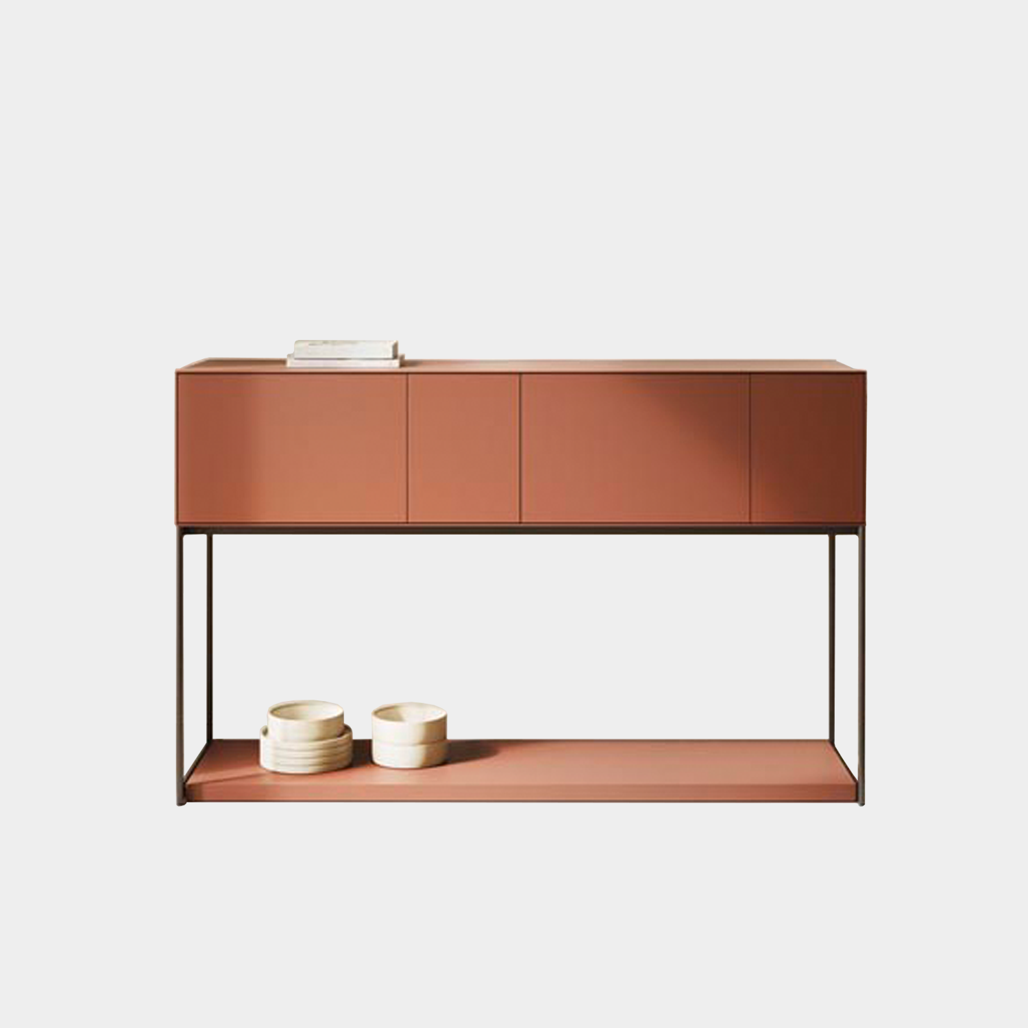 Console in lacquer with lacquered legs. Includes one module with asymmetrical doors. For more custom options, please contact us.
