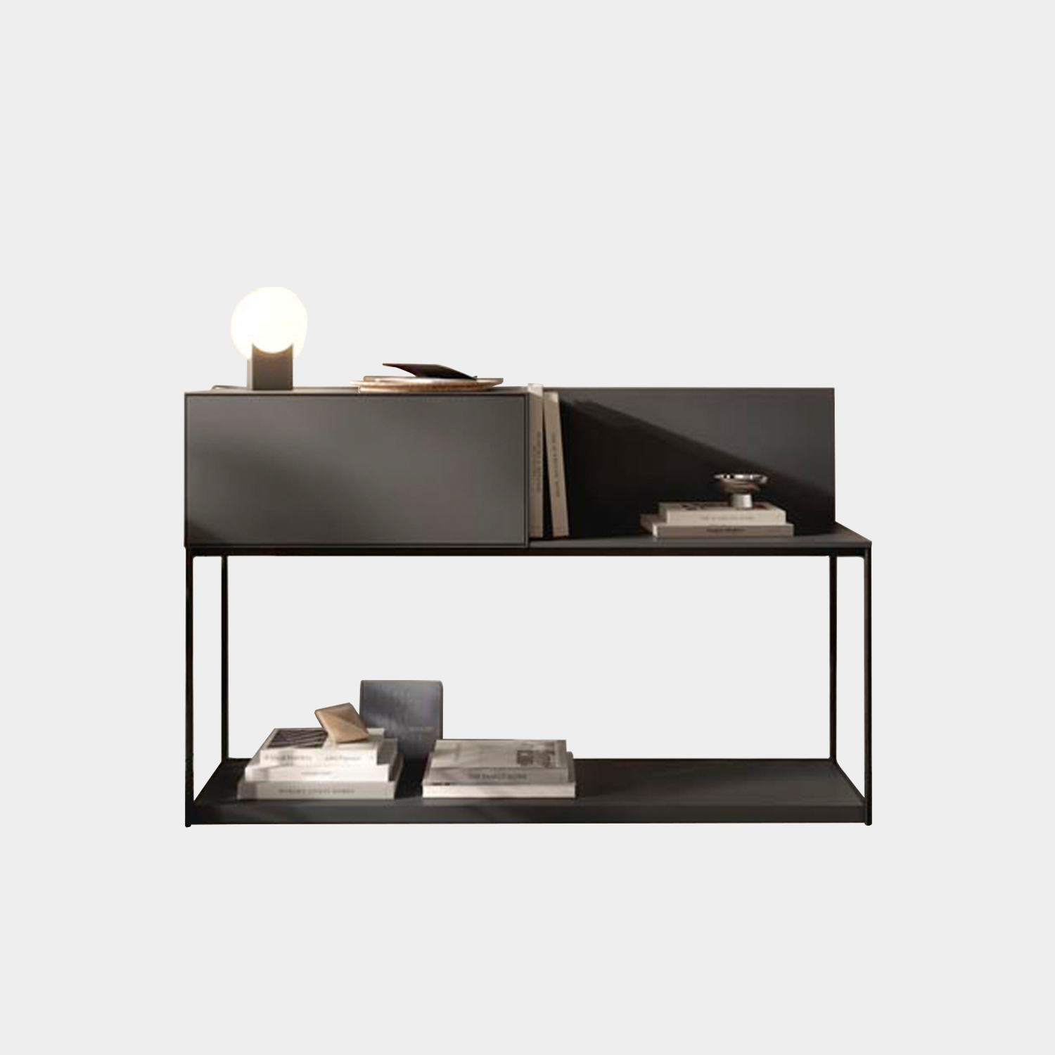 Console in lacquer with lacquered legs. Includes one module with down-swinging door. For more custom options, please contact us.