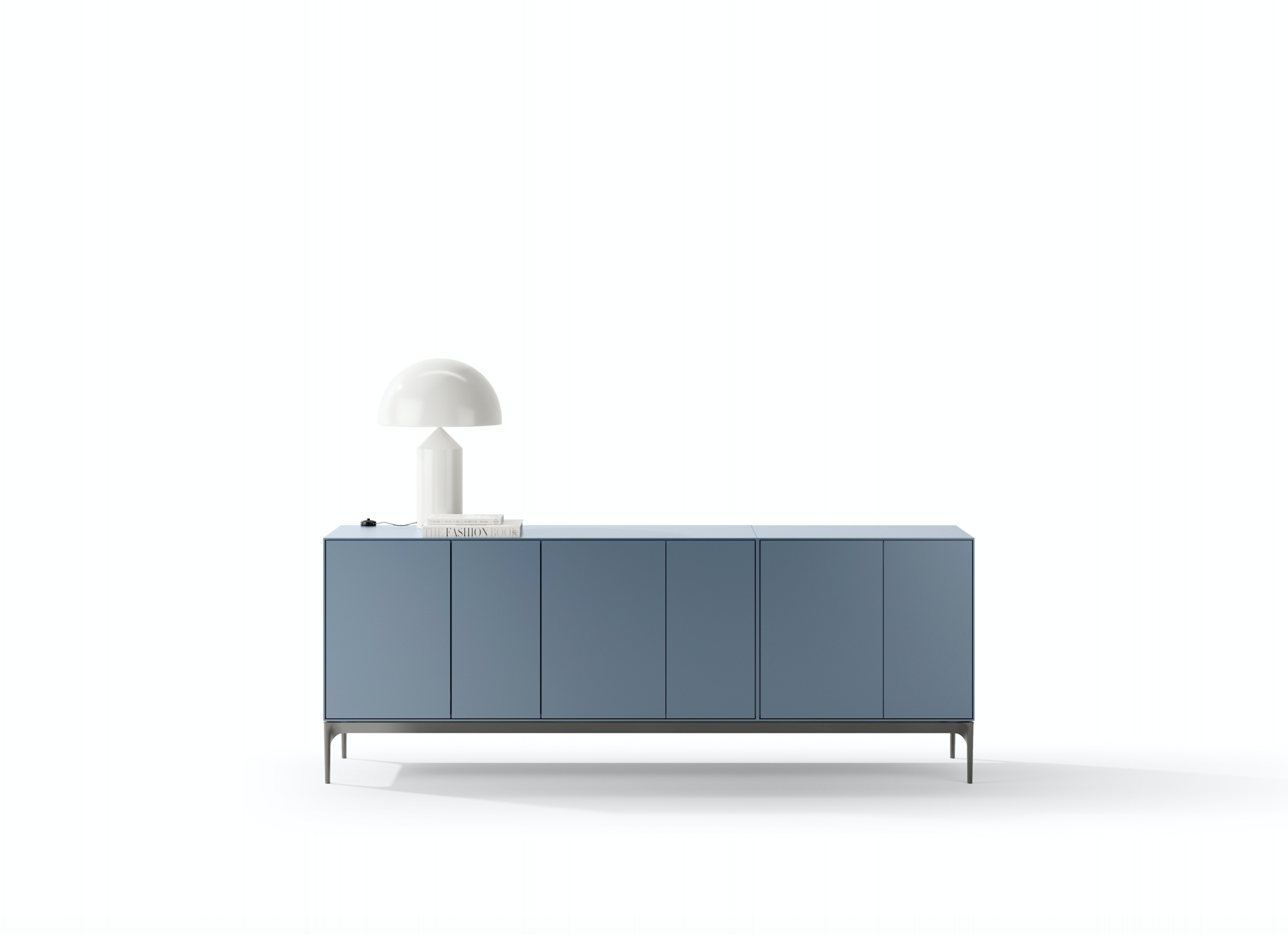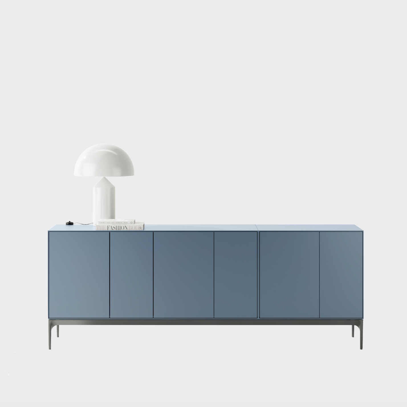 Sideboard in lacquer with lacquered elliptical legs. One module with two asymmetrical doors and one module with four asymmetrical doors. For more custom options, please contact us.
