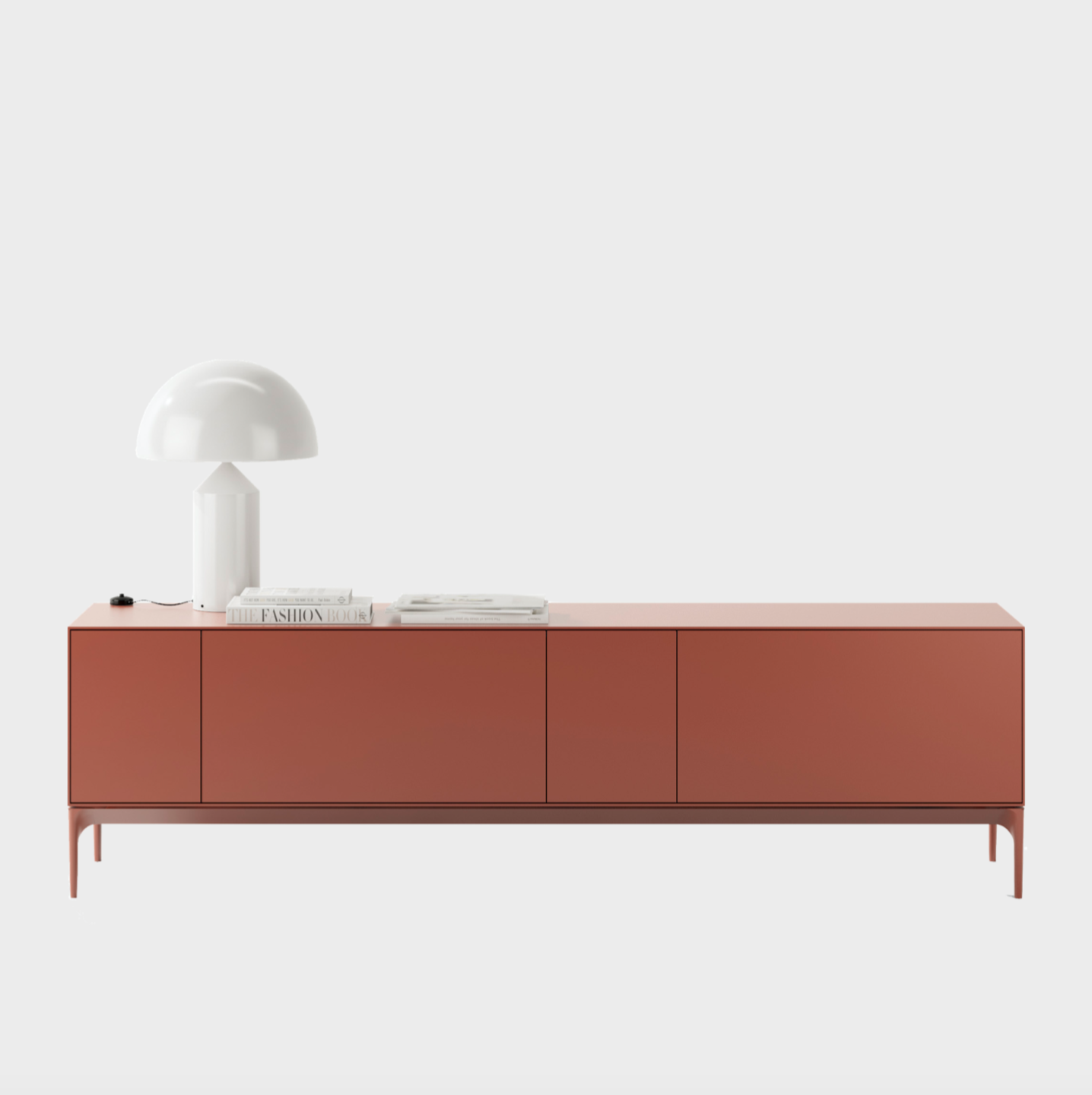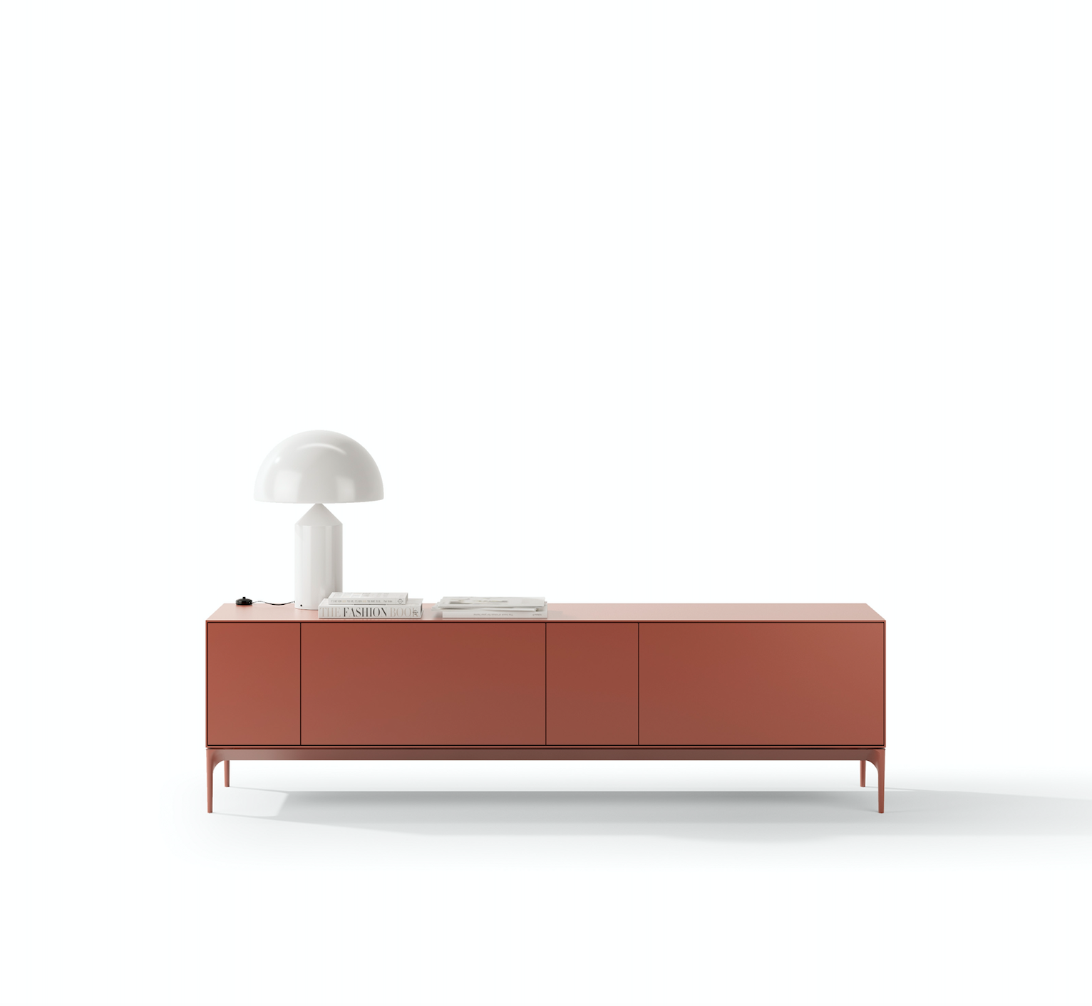 Sideboard in lacquer with lacquered elliptical legs. One module with four doors.