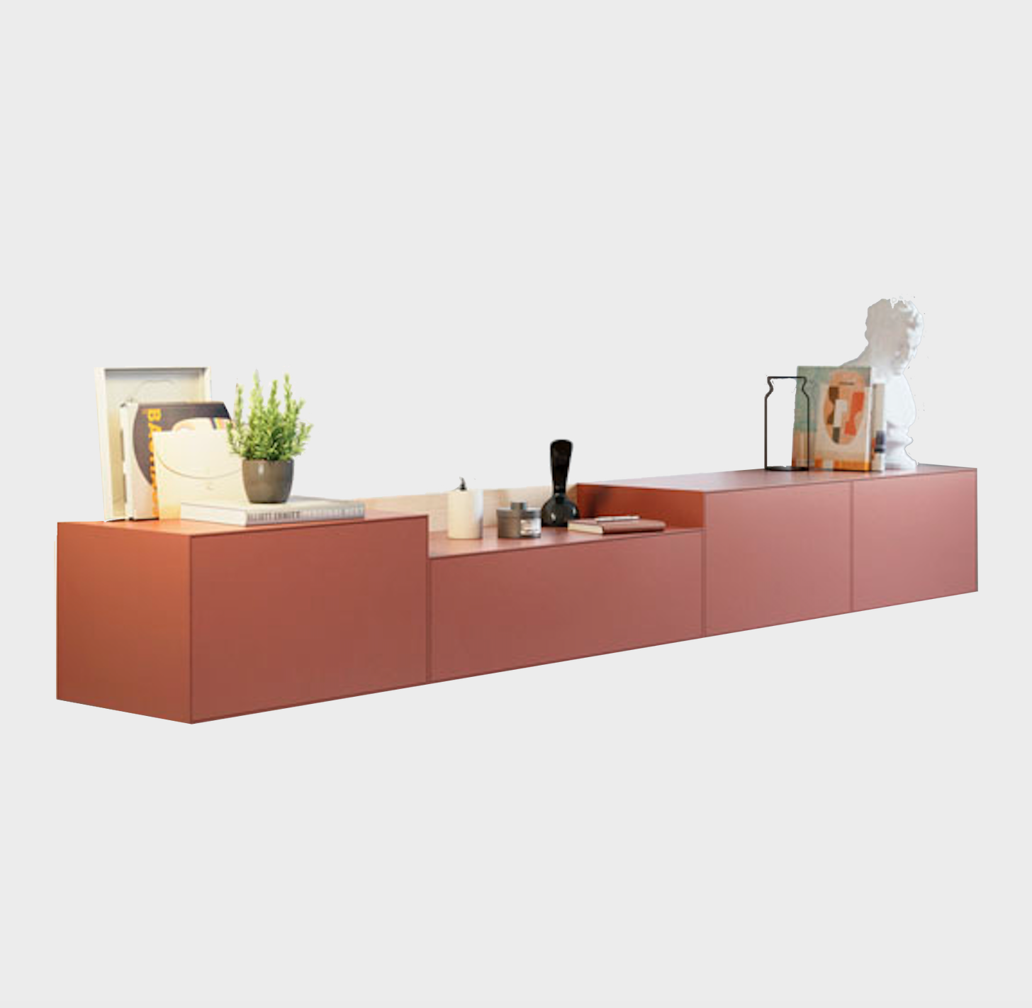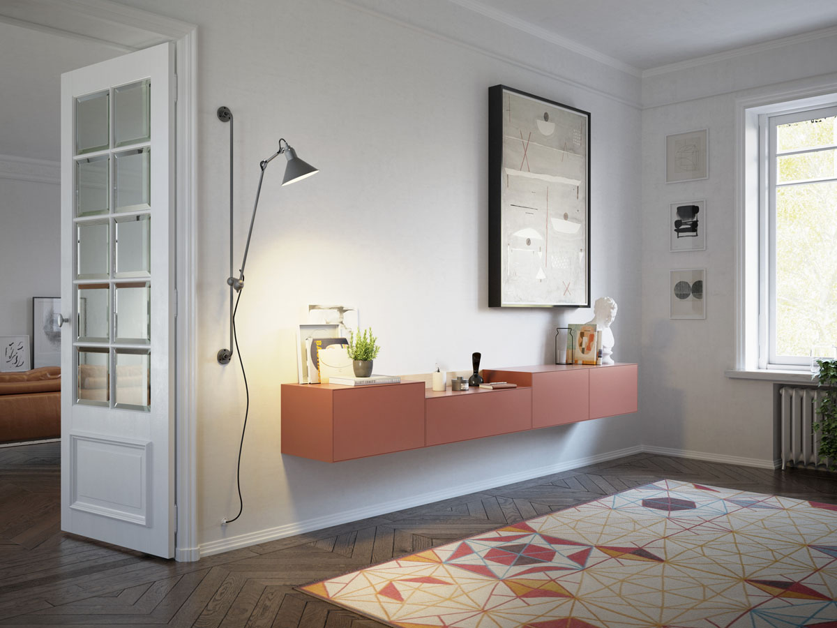 A thin half-centimeter frame envelopes the entire piece, outlining the push-to-open drawers. The Lauki collection is made up of multiple boxes that can be arranged on the floor, piled on top of one another or hung from the wall. Moreover, these boxes are available in a wide range of different measurements, finishes and functions (drawers, doors, open modules, etc.), thus enabling you to create an endless variety of configurations to suit any room.