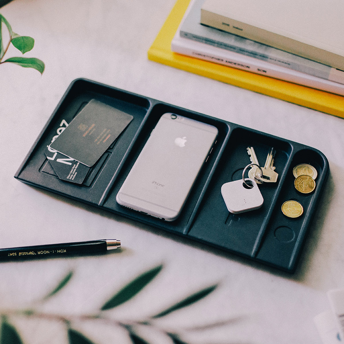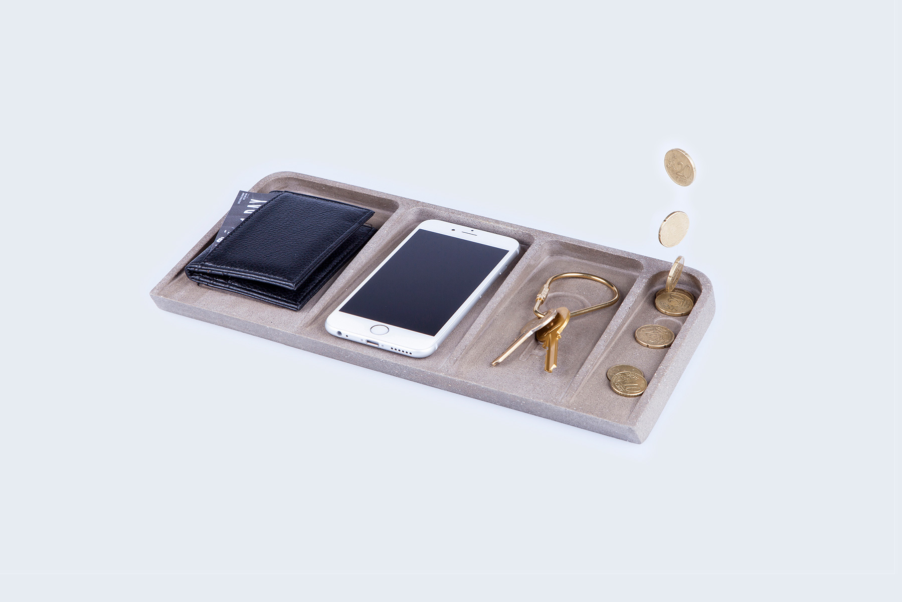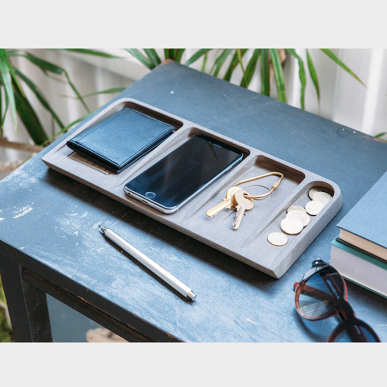 Le Videpoche is a desk tidy with four open compartments and grooves in the shape of a wallet, phone, key and coins. Best kept beside the door so you can empty your pockets as soon as you get home and grab ‘n’ go the next time you head out. Never again lose sight of your valuables at home!