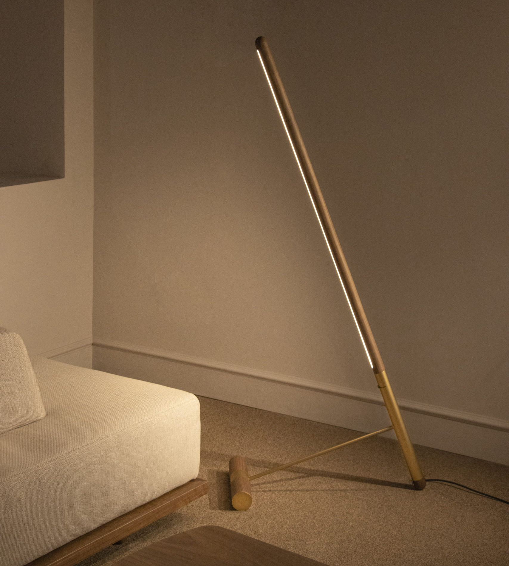 Designed as a versatile lighting solution, the Línea D Floor Lamp provides soft, warm illumination, making it ideal for workspaces, bedside tables, or living areas. Its understated form allows it to integrate seamlessly into various settings while adding a touch of sophistication.