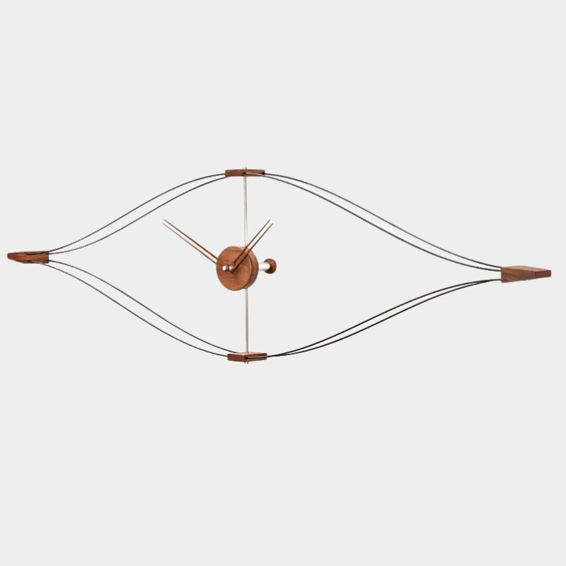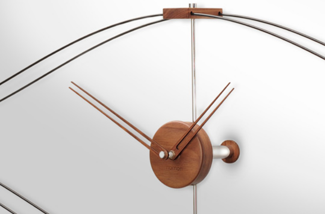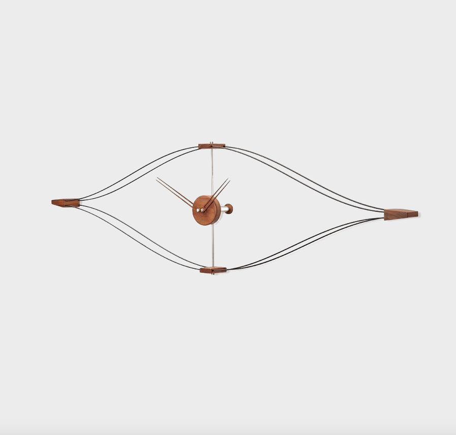 Look is a wooden wall clock with a shape of an eye. The all-seeing eye, from the wall, observes everything that happens in the environment, like a witness to the passage of time. Because of its special shape, it is one of the most daring models of the brand, far from their usual circular silhouette. The double-rod hands rotate on the central box, like an expectant pupil.