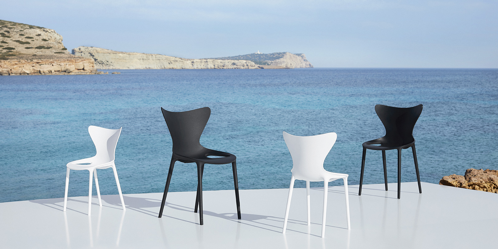 Polypropylene reinforced with fibreglass, manufactured by gas injection. Stackable. Suitable for indoor and outdoor use. In addition, the “Vondom Revolution” finish means it is made from 100% recycled plastic from the Mediterranean sea.