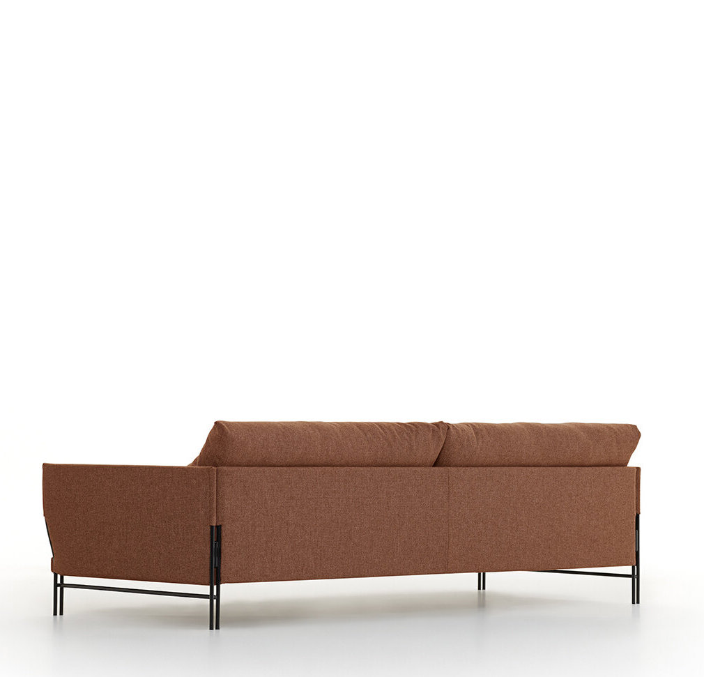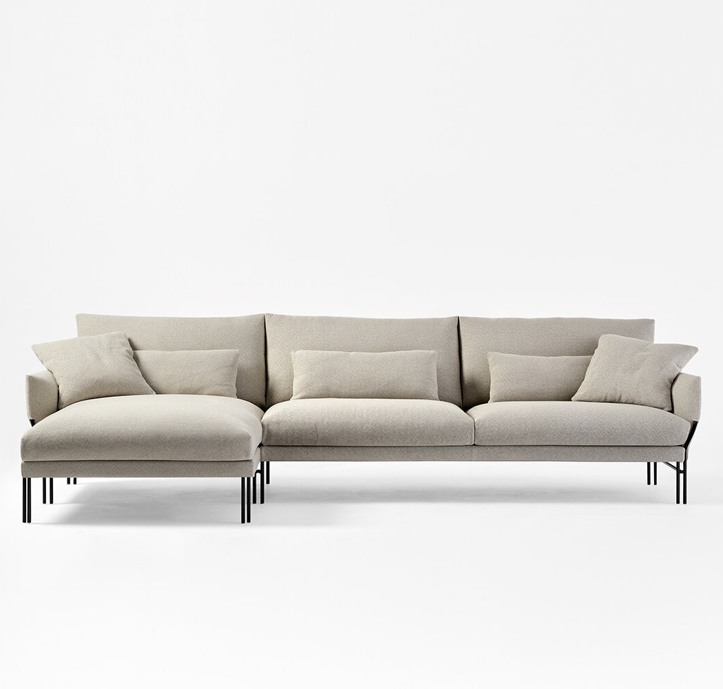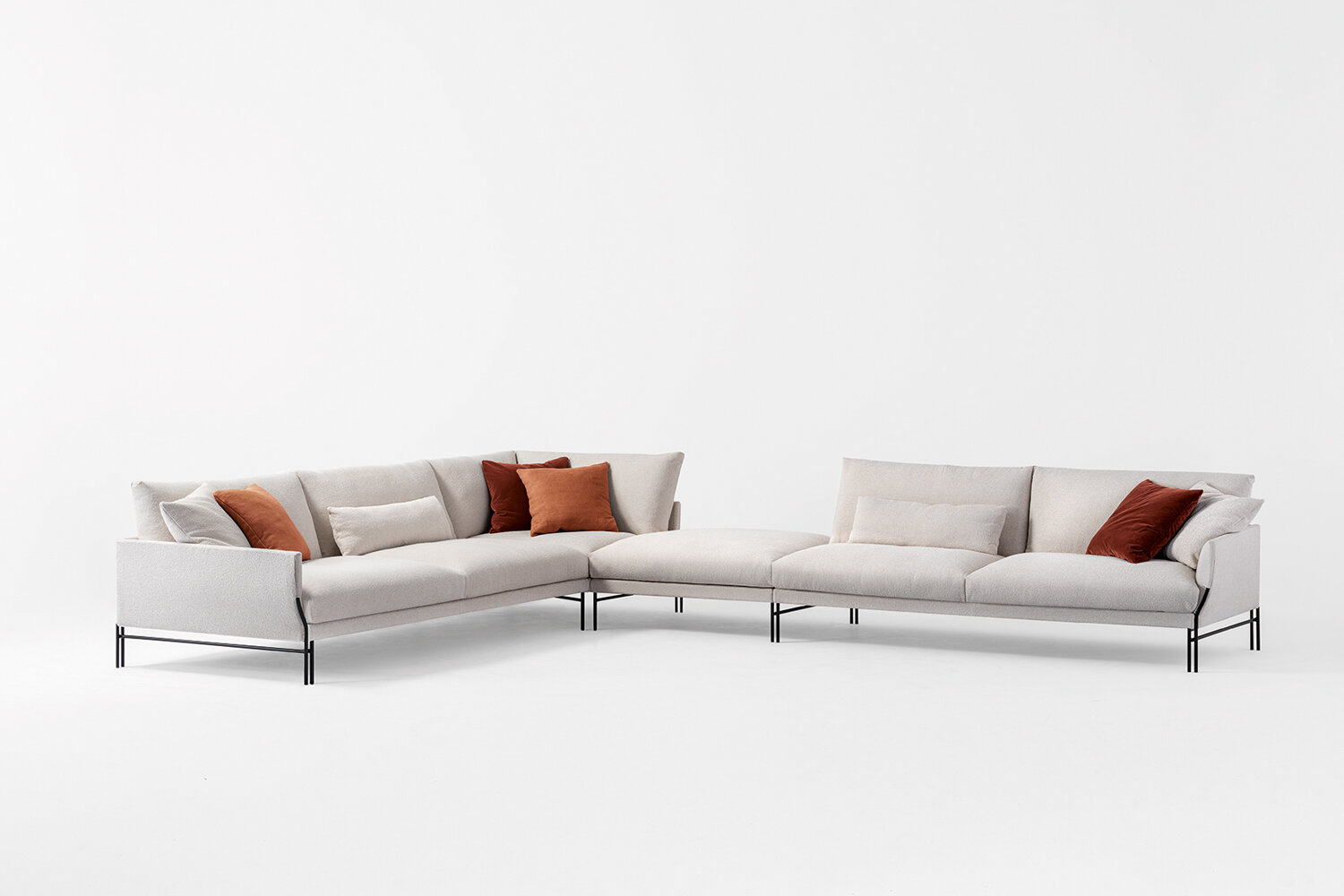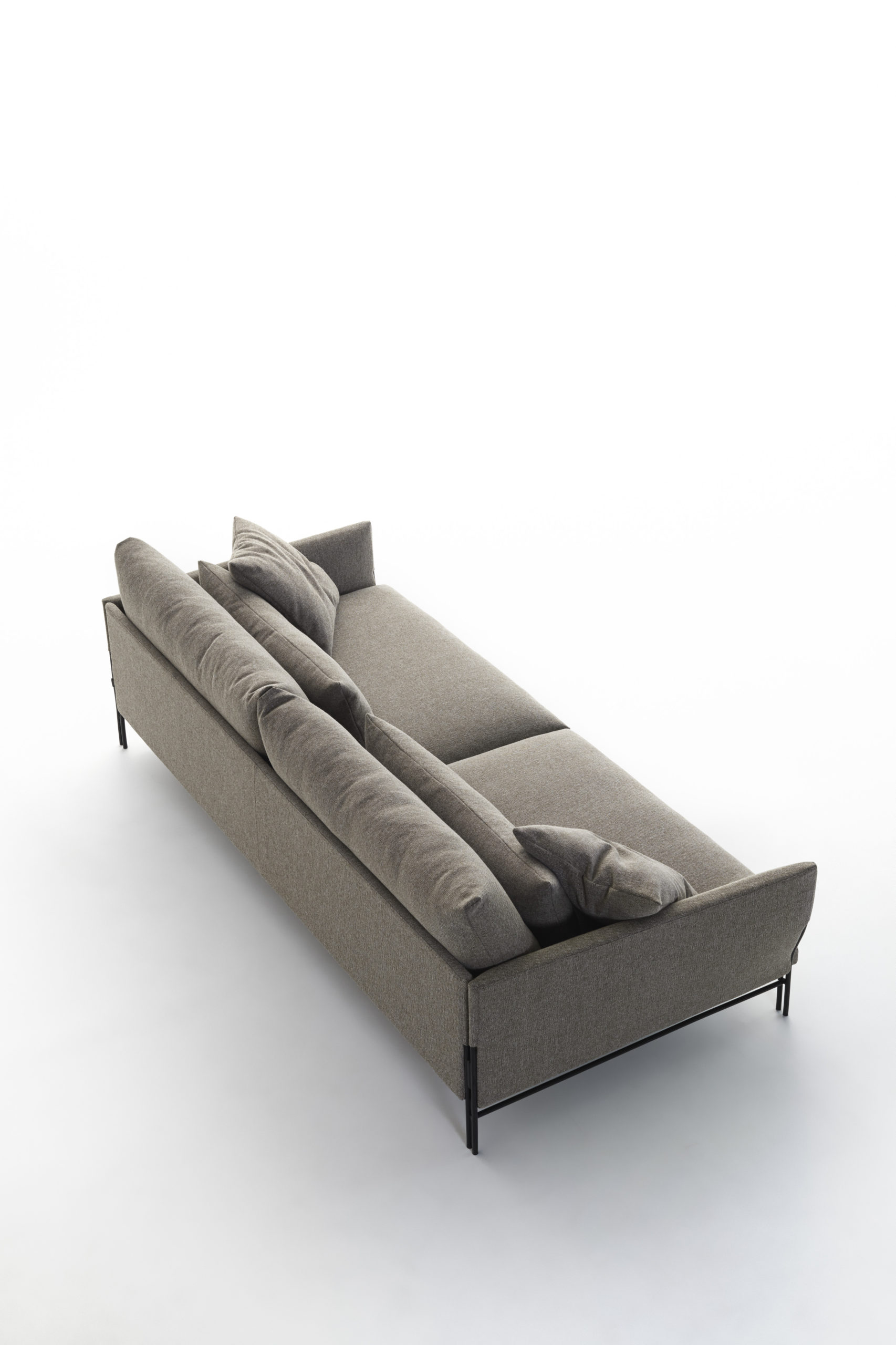 This sofa combines elegant, clean and pure lines with the comfort provided by a thick and soft sitting area, qualities that the back of the sofa also convey. Aesthetically, one of its most distinct features is a visible base made up of a double leg system that reveals the lightness and the strength of the structure.