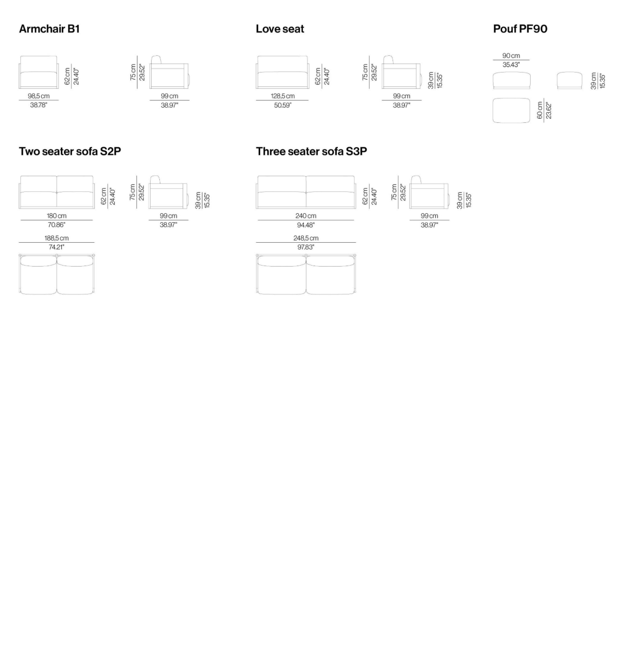 Available in armchair to 4-seater Sofa options. Please inquire for finishings and dimensions. Price is for large 2 seater option.