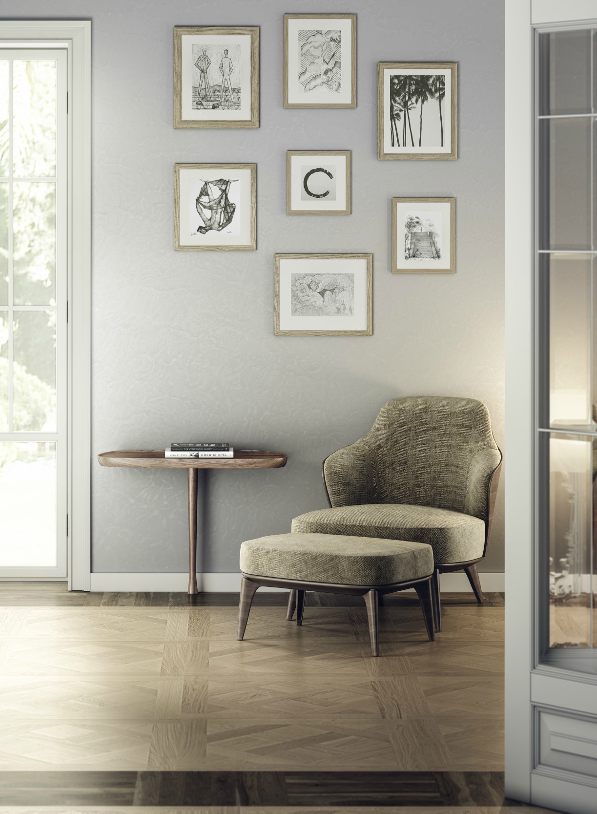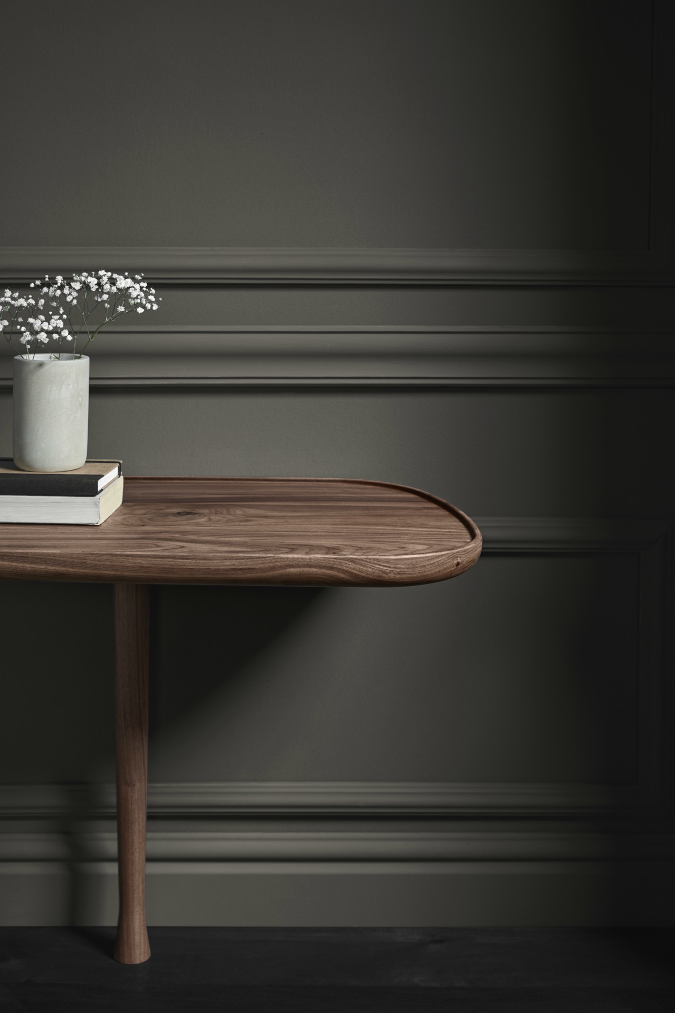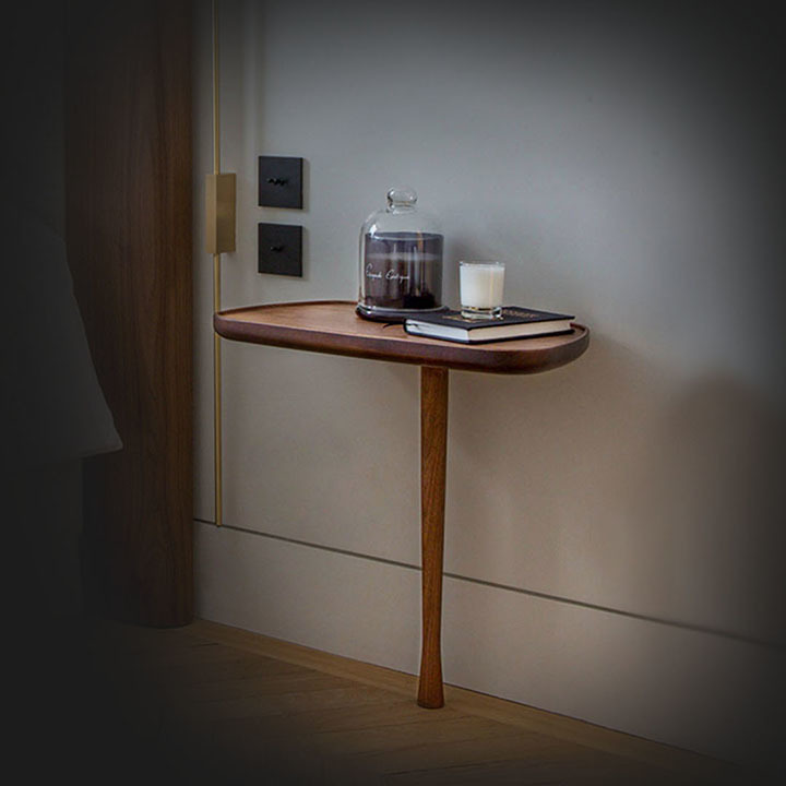 Versatile and contemporary design ideal next to the sofa or as a bedside table. Its organic design and walnut wood relaxes us and brings serenity.