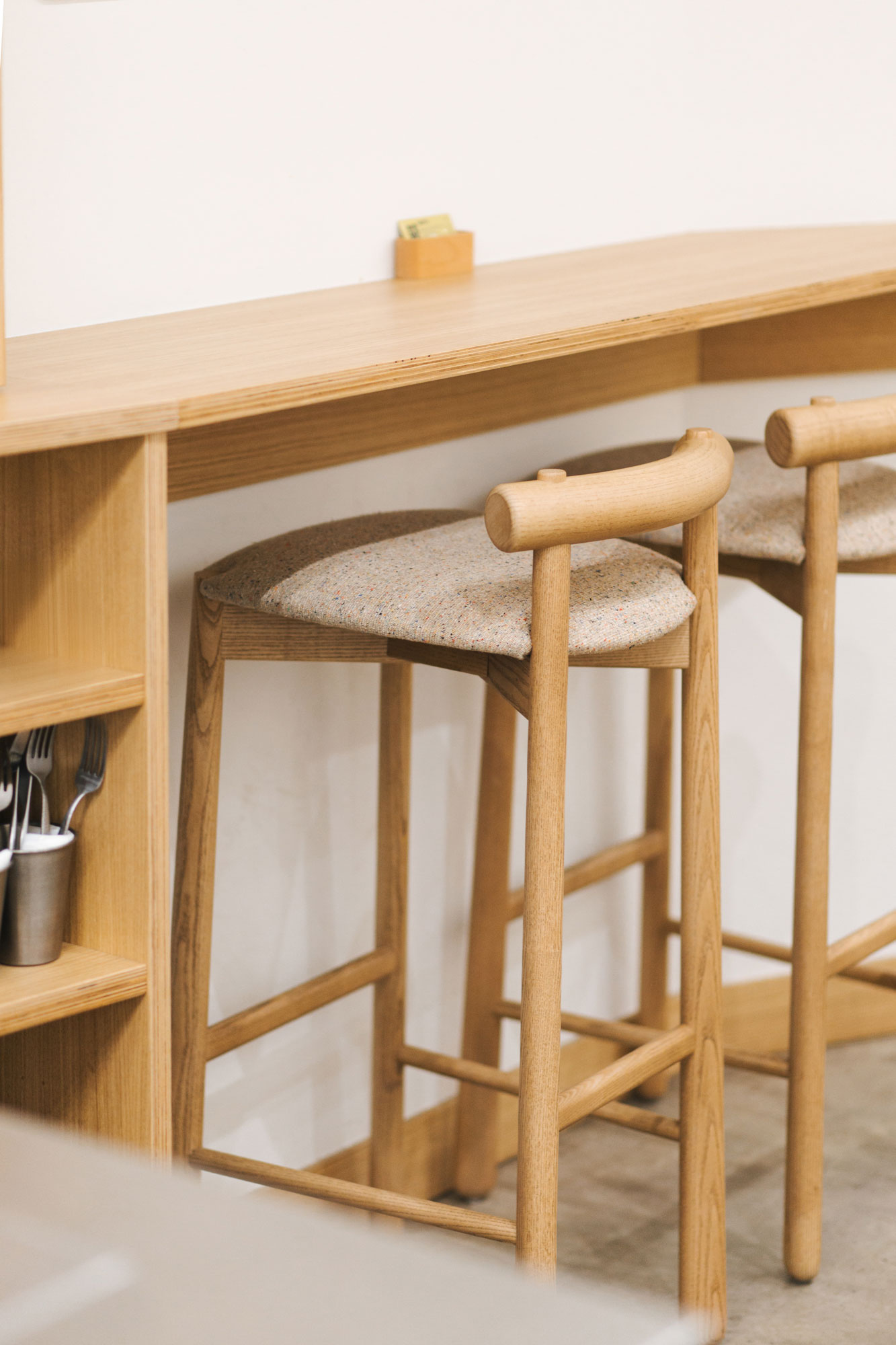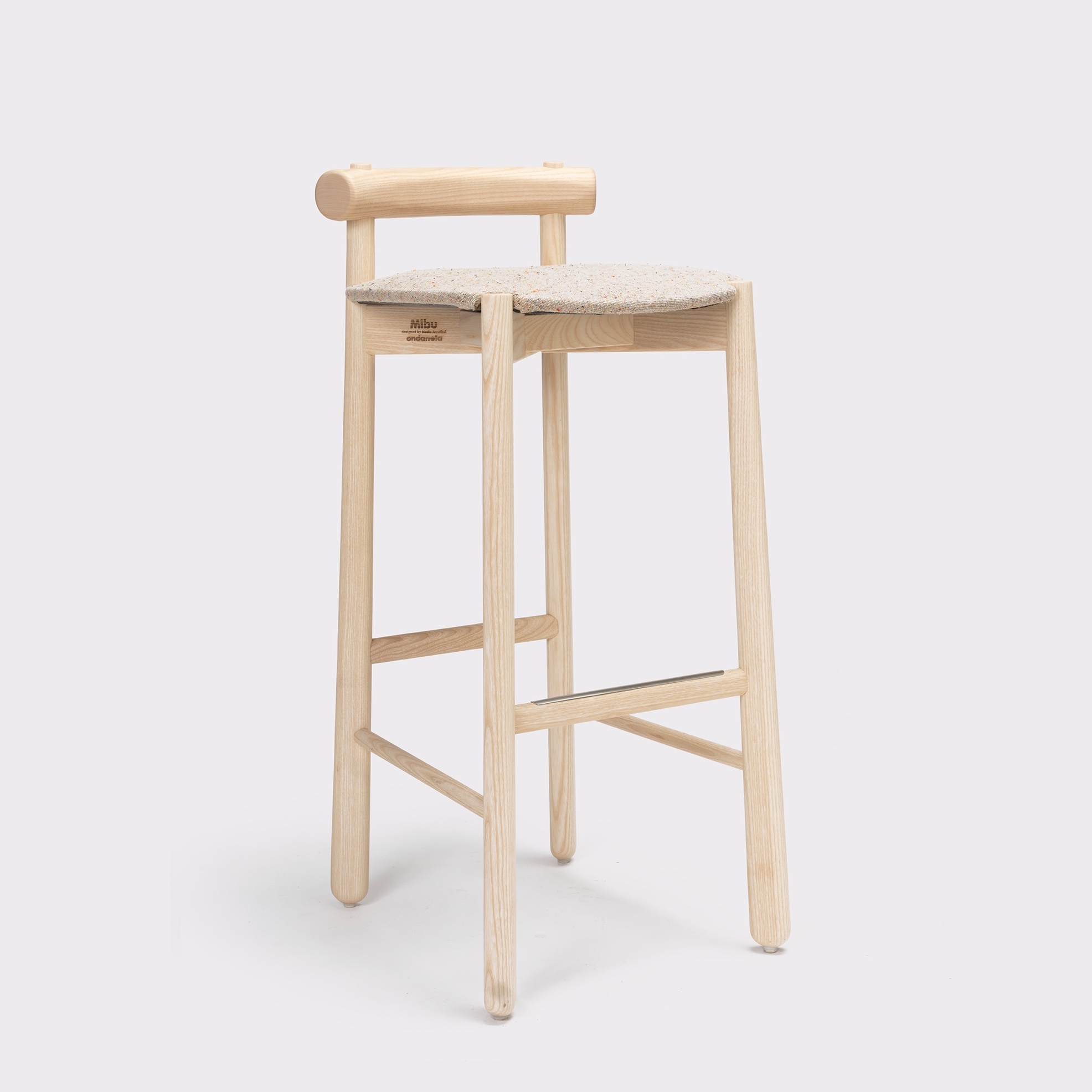 Inspired by the connection between East and West, the Mibu Stool blends Japanese influence with a contemporary aesthetic. Designer Nadia Arratibel works with Ash wood to create a stool that balances a playful yet formal nature, clean and pure lines that combine functionality and design. Upholstered seat option available.