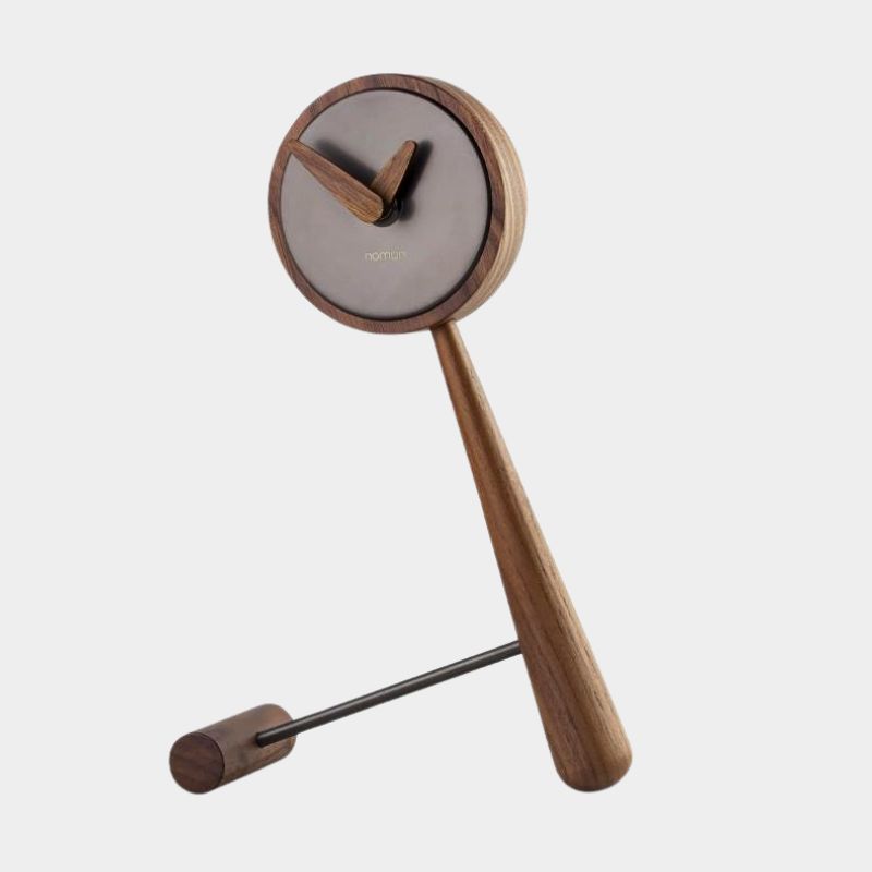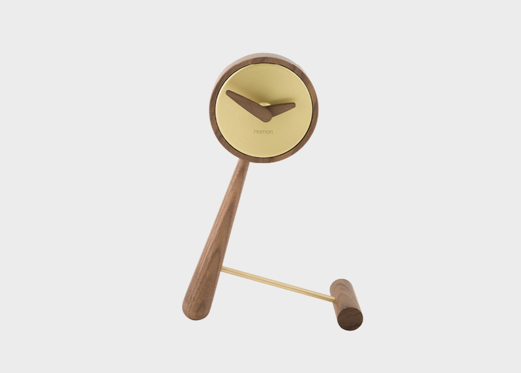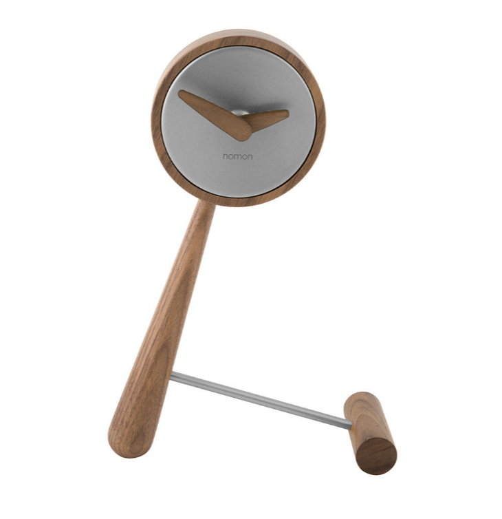 Mini Puntero magnifying glass. The walnut structure is supported by a metal base whose finish, gold or graphite, combines the interior of the dial.