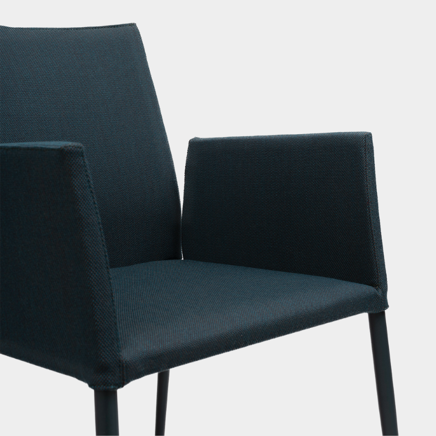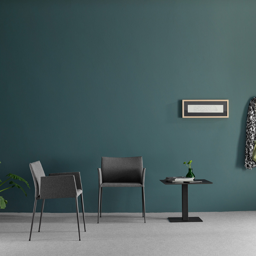 The Moka Chair brings the comfort of an easy chair into a refined, minimalist design, creating spaces that feel warm and welcoming. Its elegantly tapered steel structure complements the fully upholstered seat, combining timeless tradition with modern simplicity.