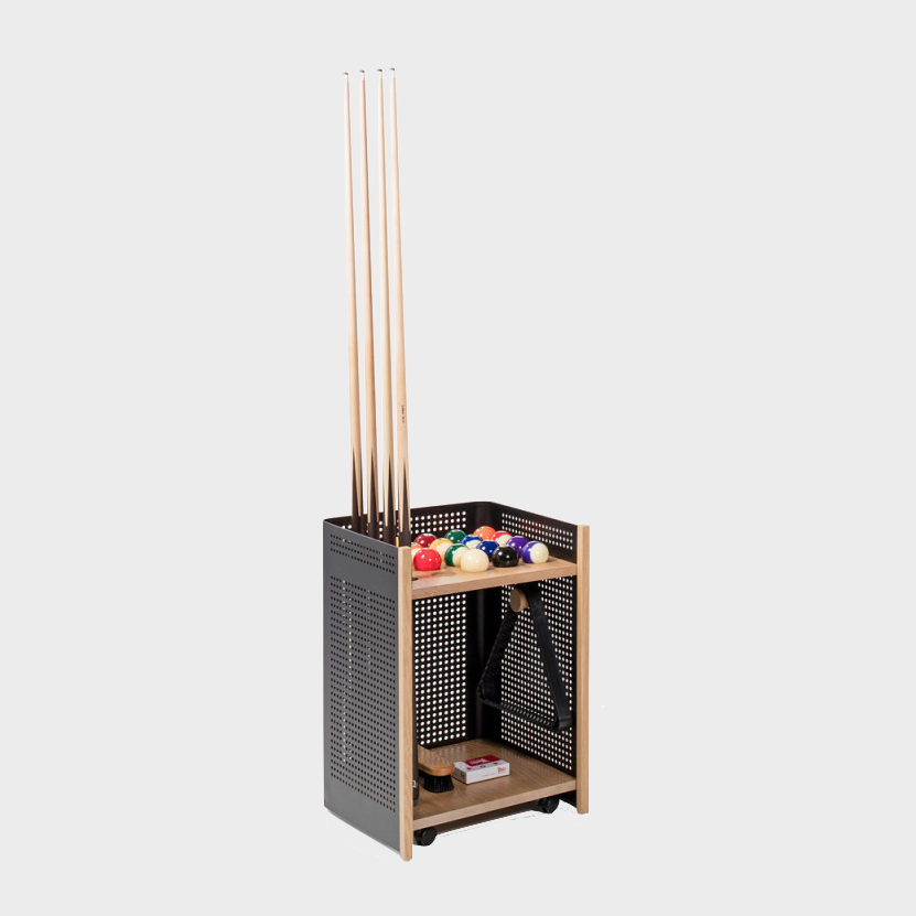 Made from high-quality, weather-resistant materials, the Mou cue rack provides a practical and organised solution for storing cues, ensuring they are always within reach. Its minimalist design blends seamlessly with indoor interiors alike, offering both functionality and aesthetic refinement.