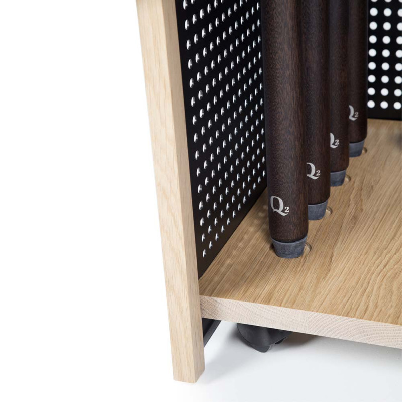 The Mou Indoor Floor Cue Rack by RS Barcelona is a sleek and functional accessory designed to complement any outdoor billiard setup. Crafted with durability in mind, it is built to withstand the elements while maintaining its stylish and modern appeal.