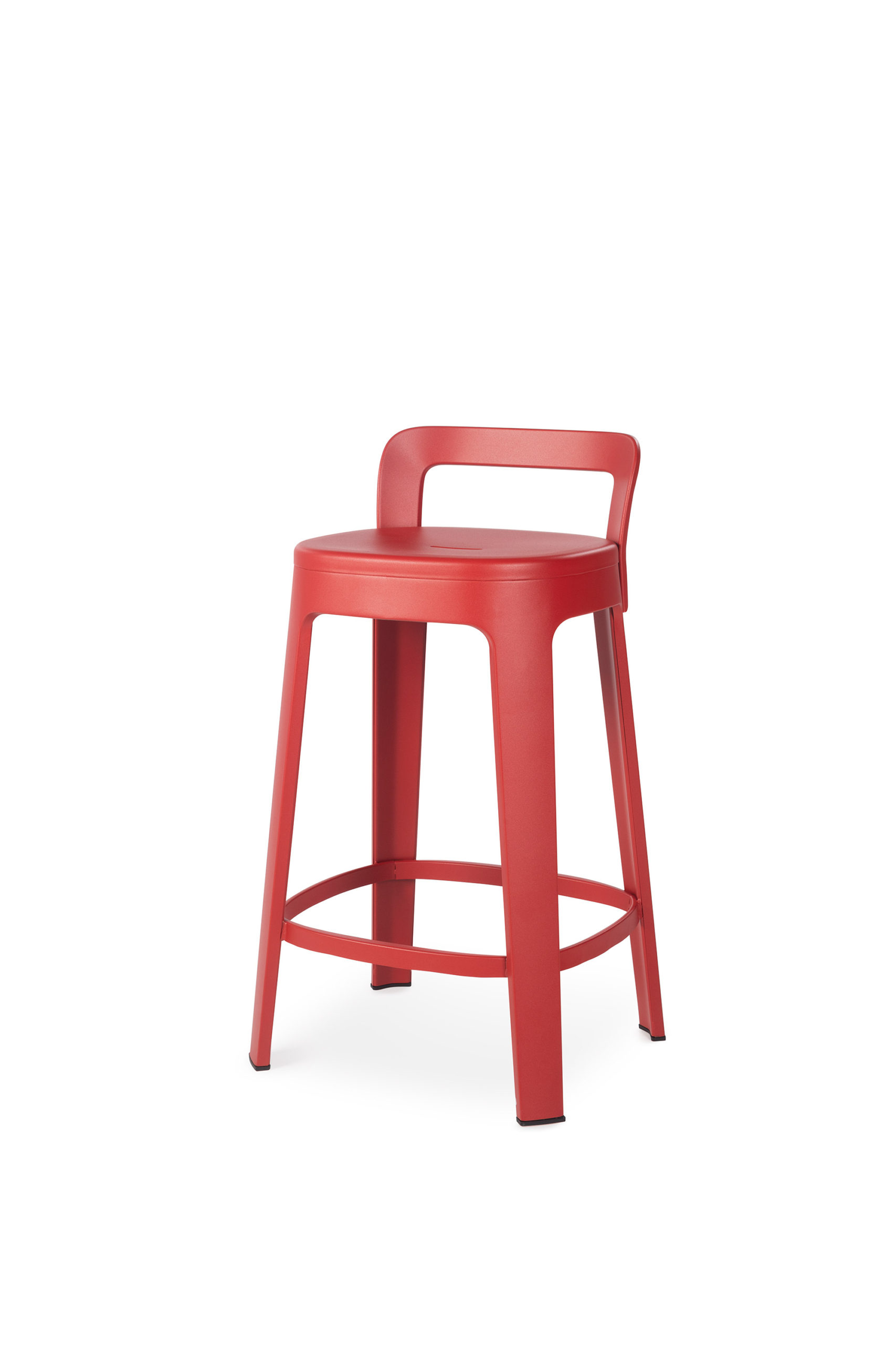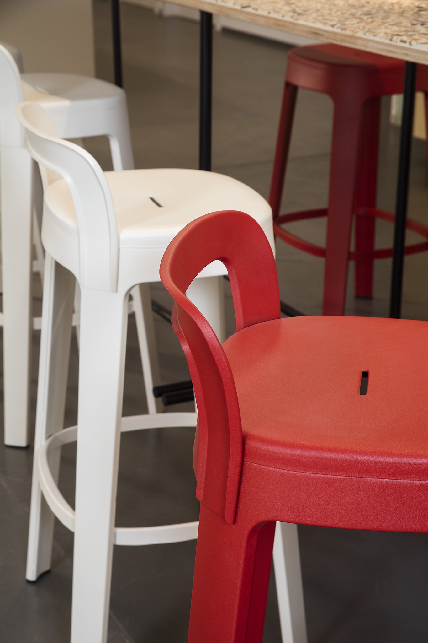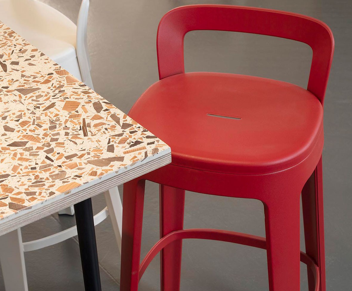 The Ombra stool has its own place in a bar, restaurant, terrace, office or home. Its generous measurements and the ergonomic shape of its seat provide a comfortable sitting. Steel structure with cataphoric coating process with micro textured polyester paint. Available in bar, counter or low version. Full monochrome colour range available.