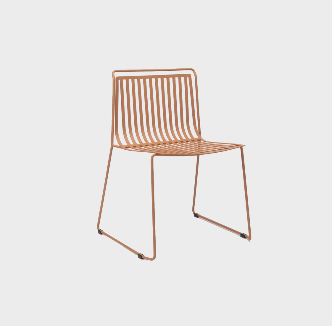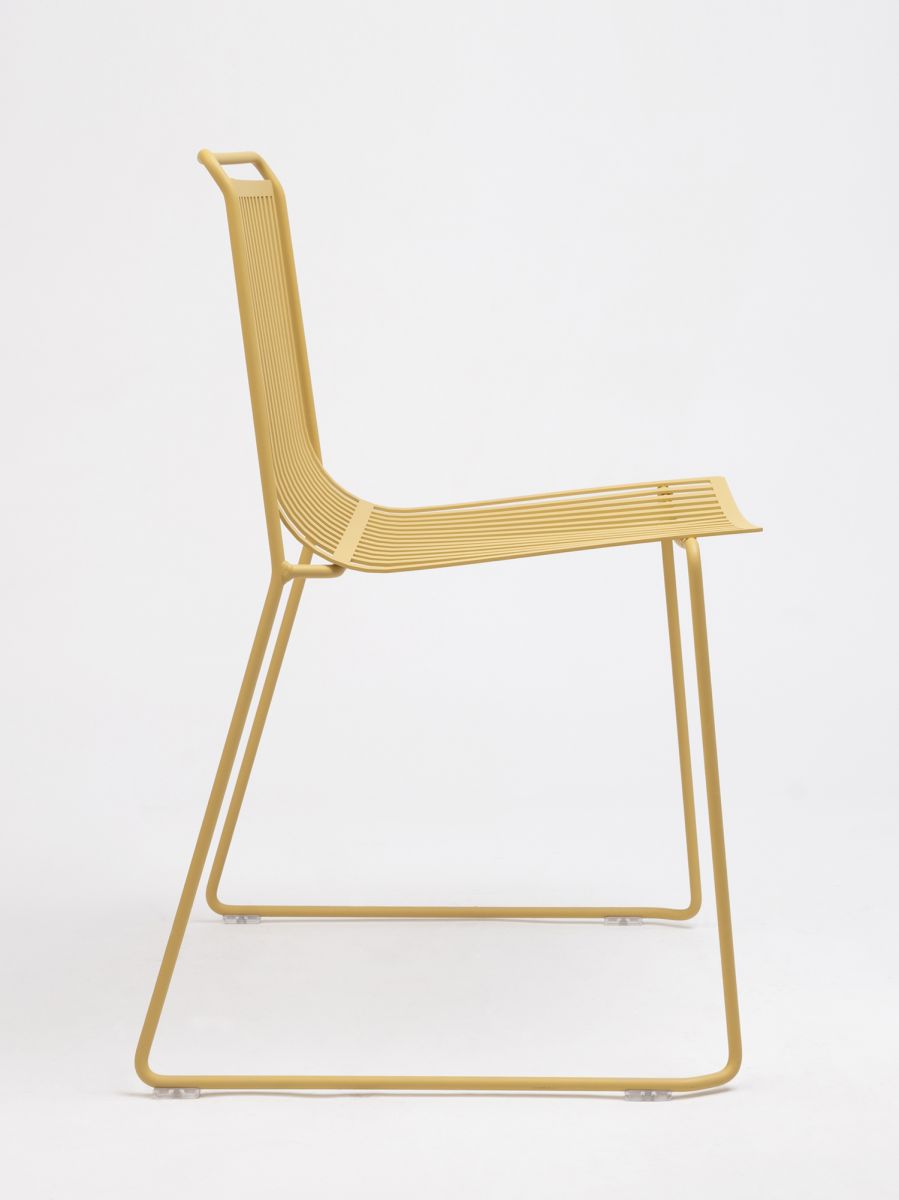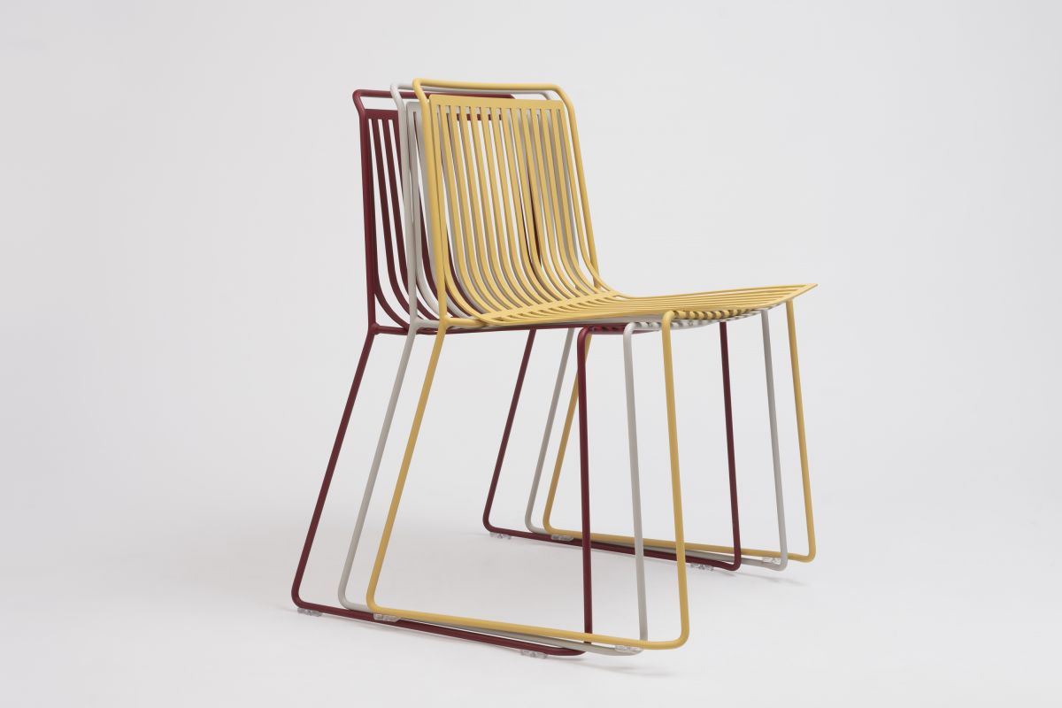 The new Alo Outdoor, with its well known steel structure and its seat in steel ribbons that seem as if they were floating, giving the chair a sense of lightness and elegance.