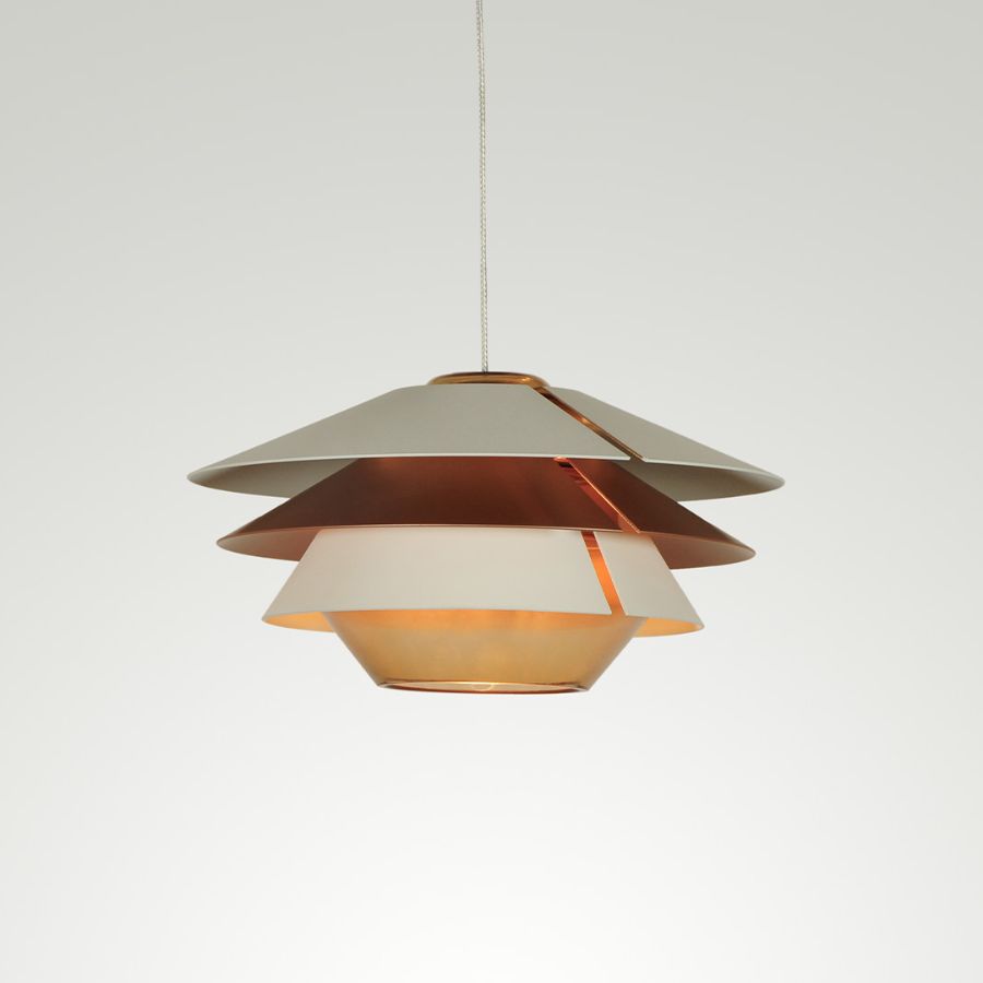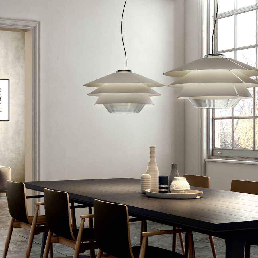 The Overlay Pendant is available in multiple sizes and finishes, allowing for customisation to suit various design aesthetics. Whether used as a standalone statement piece or arranged in a cluster for a dramatic effect, its balanced proportions and timeless appeal make it a standout addition to modern lighting compositions.