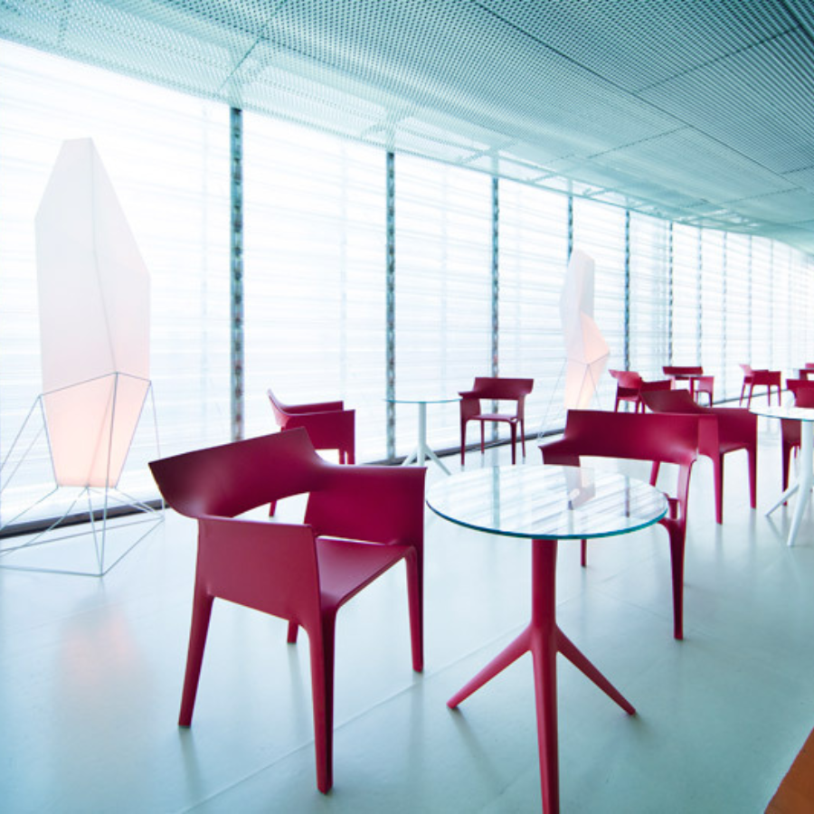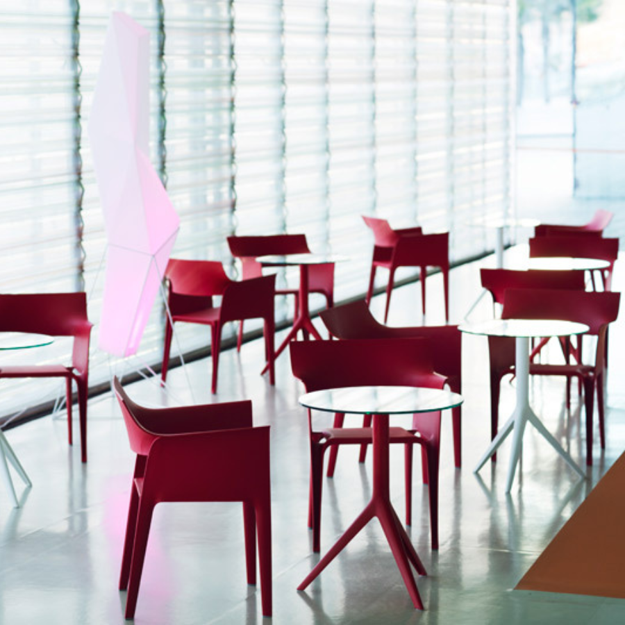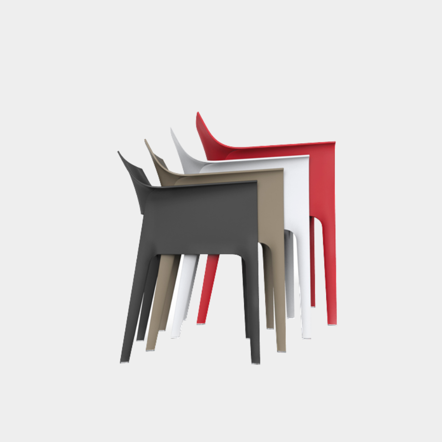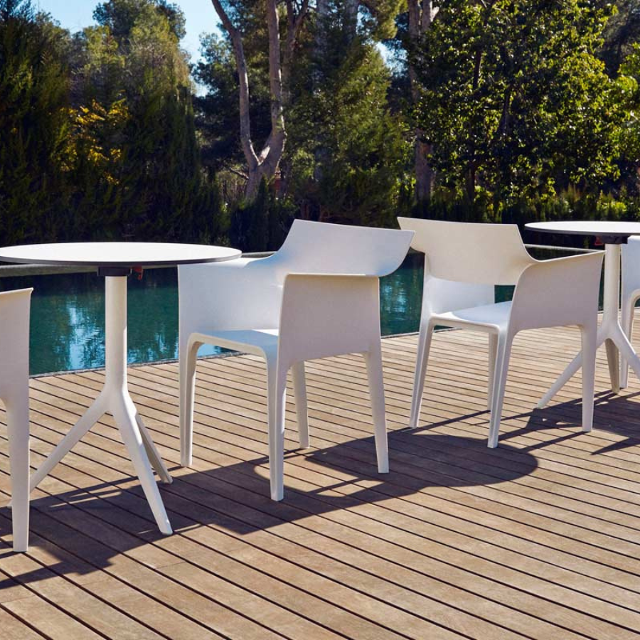 Made from polypropylene and reinforced with fibreglass manufactured by gas injection. Stackable. Available in various colours supplied by VONDOM.