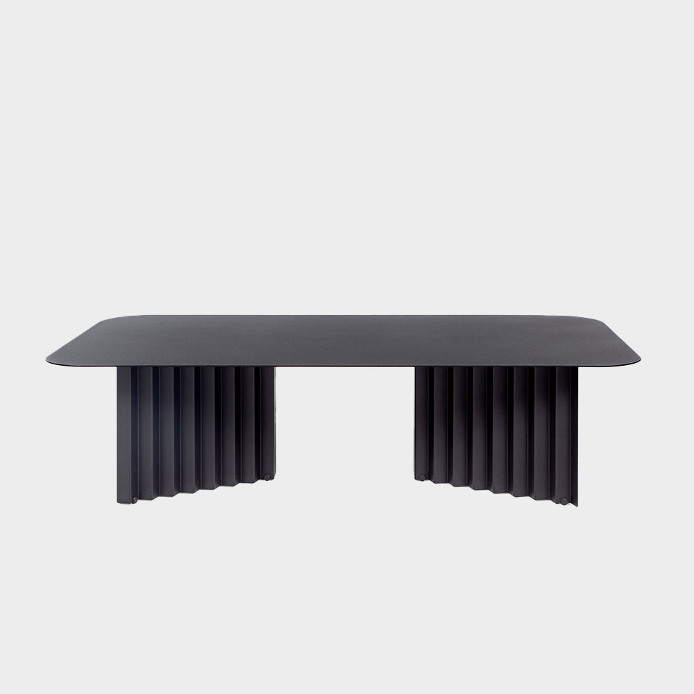 Plec was born as a rectangular coffee table in three sizes and heights to combine with each other and fit into any environment, both indoors and outdoors. The distinctive structure of its accordion-shaped legs, when they meet the rays of light, creates light and shade effects that flood the room.