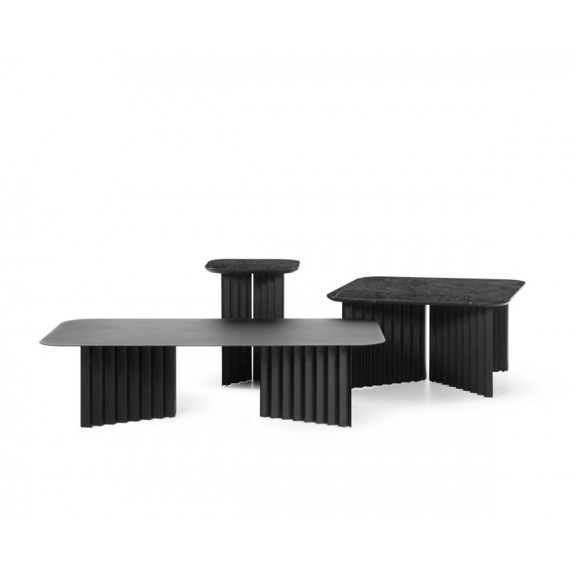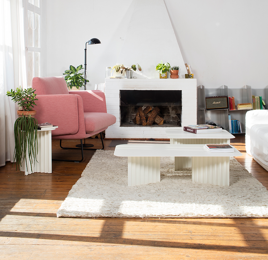 Plec was born as a rectangular coffee table in three sizes and heights to combine with each other and fit into any environment, both indoors and outdoors. The distinctive structure of its accordion-shaped legs, when they meet the rays of light, creates light and shade effects that flood the room.
