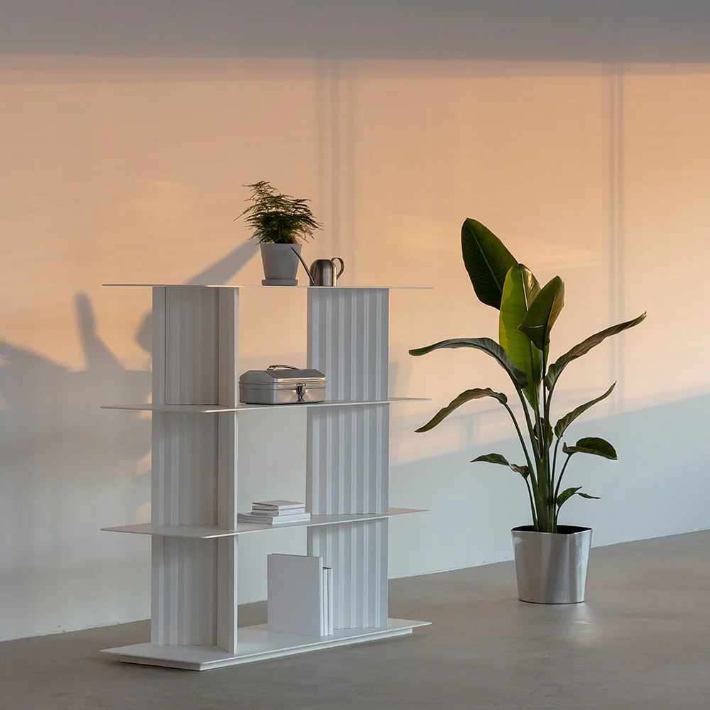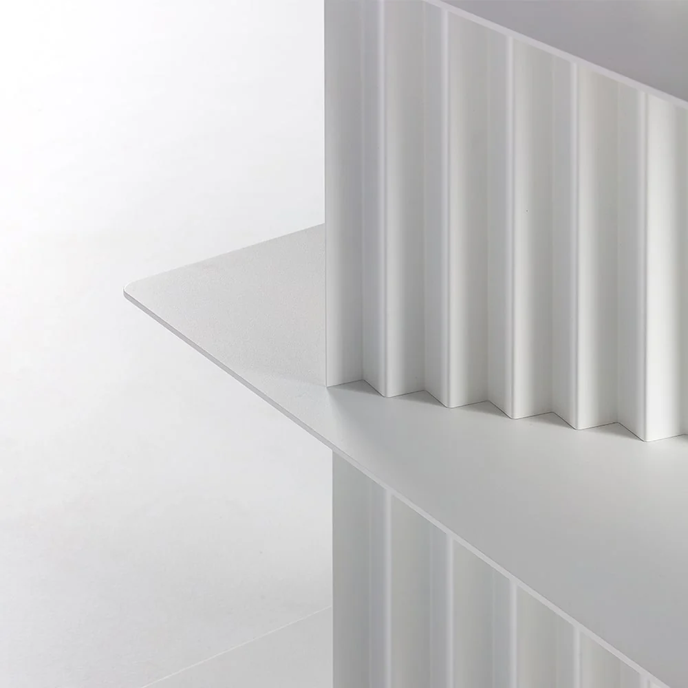 Plec Shelving is an storage system that preserves the essence of the Plec collection. With a truly sculptural character and distinct architectural shapes, it’s perfect folds bring beauty to the space through their symmetry, transforming the basic function of a shelf into pure art, even filling the emptiness with meaning.