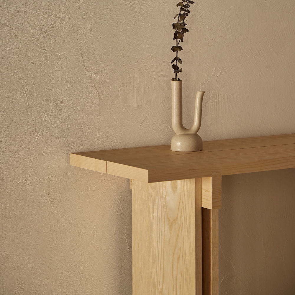 The care in the design is also evident in the small details. The Rak top is divided into two planks with a four-millimeter separation between them, which lightens the whole. The crossbeams at the junction of the structure with the top and at the bottom add strength. The space between the vertical sides creates an interesting visual interplay at the intersection with the crossbeam.
