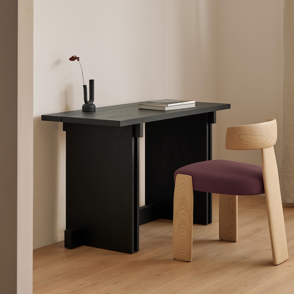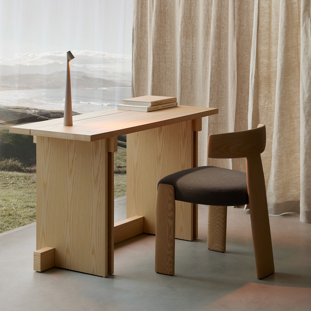 Interior and industrial designer Francesc Rifé designs the RAK desk – a set of wooden pieces meticulously joined together, creating a perfect harmony between volume and elegance with a refined aesthetic. In spite of its forceful volume, they achieve a perfect balance in the resulting pieces. The care in the design is also evident in the small details. The Rak top is divided into two planks with a four-millimeter separation between them, which lightens the whole. The crossbeams at the junction of the structure with the top and at the bottom add strength. The space between the vertical sides creates an interesting visual interplay at the intersection with the crossbeam.