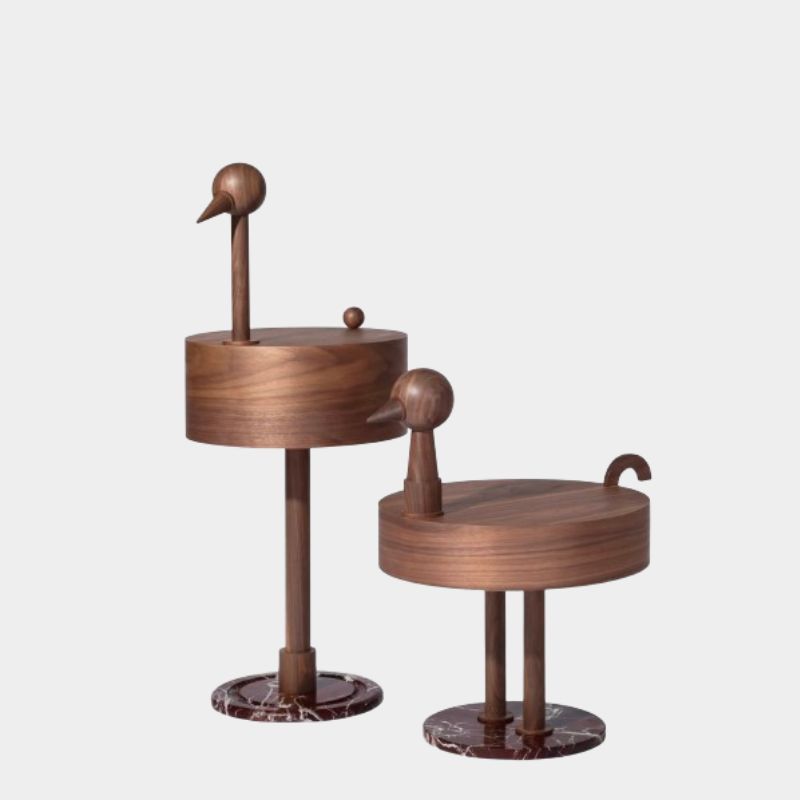 Rare Avis is a dialogue between art and design, which transforms an everyday object into an artistic element. It combines geometric shapes in walnut and the formal refinement of Rosso Levanto marble. An eccentric object of cubist influence.
