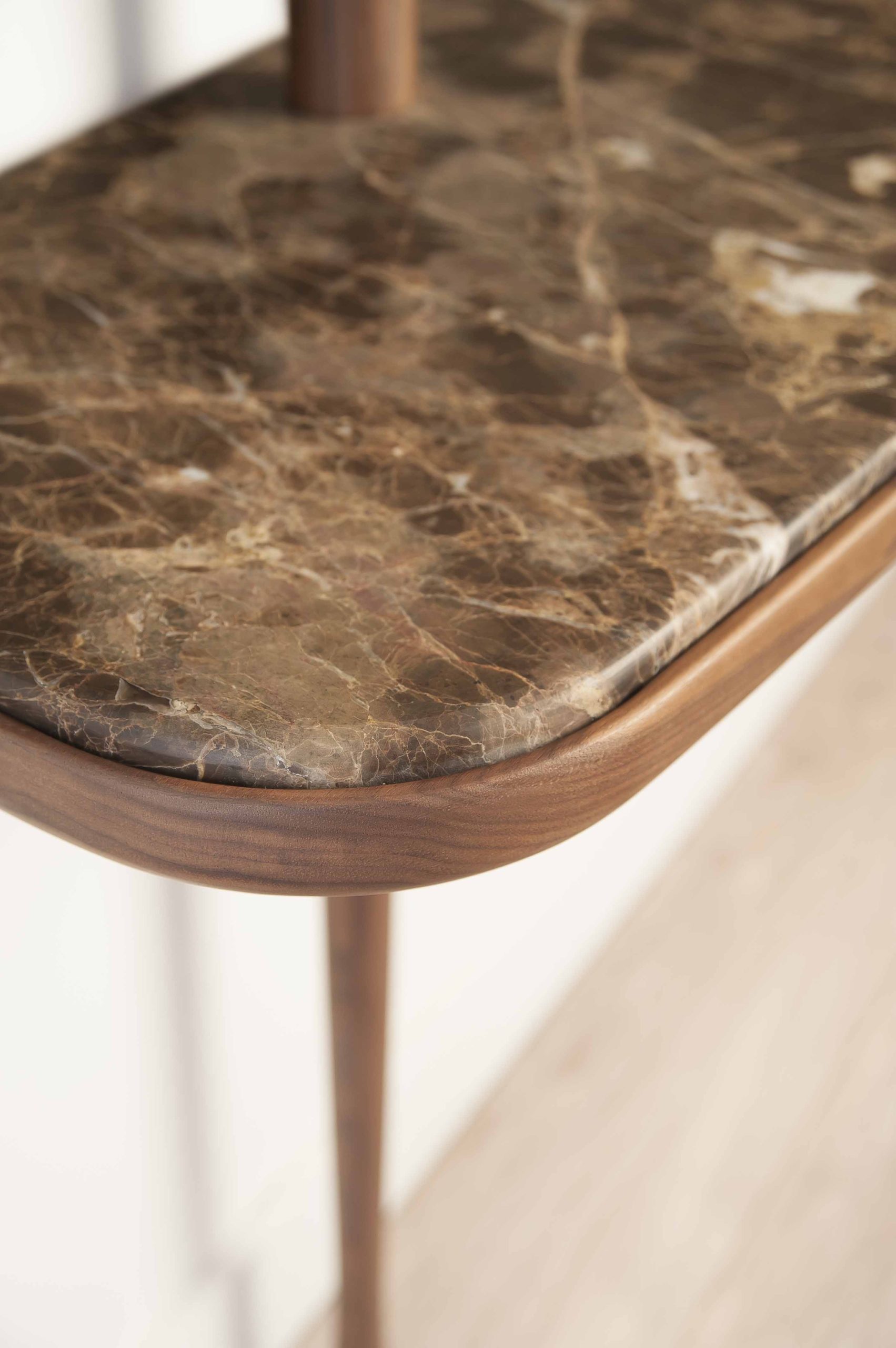 Natural solid walnut or black ash and polished brass accessory