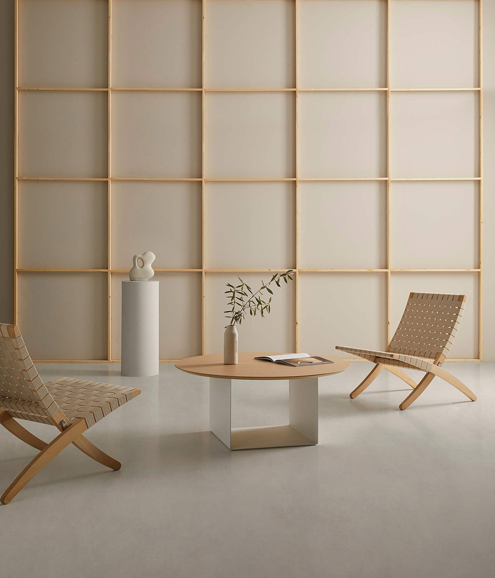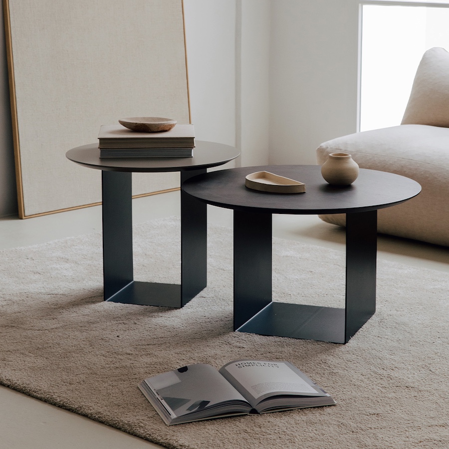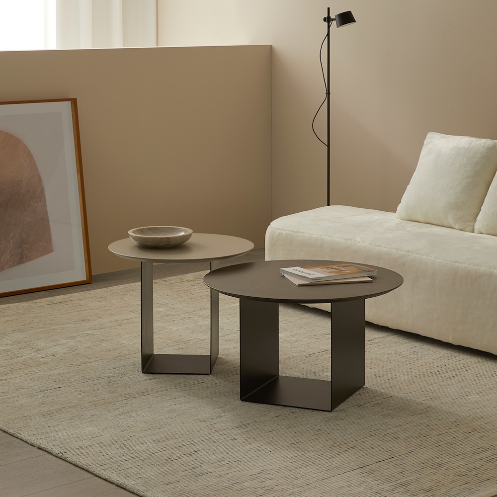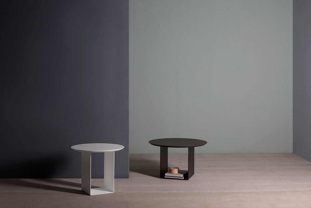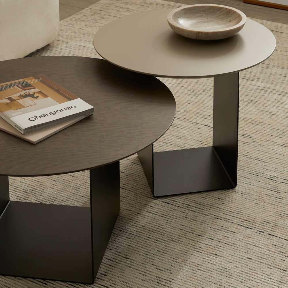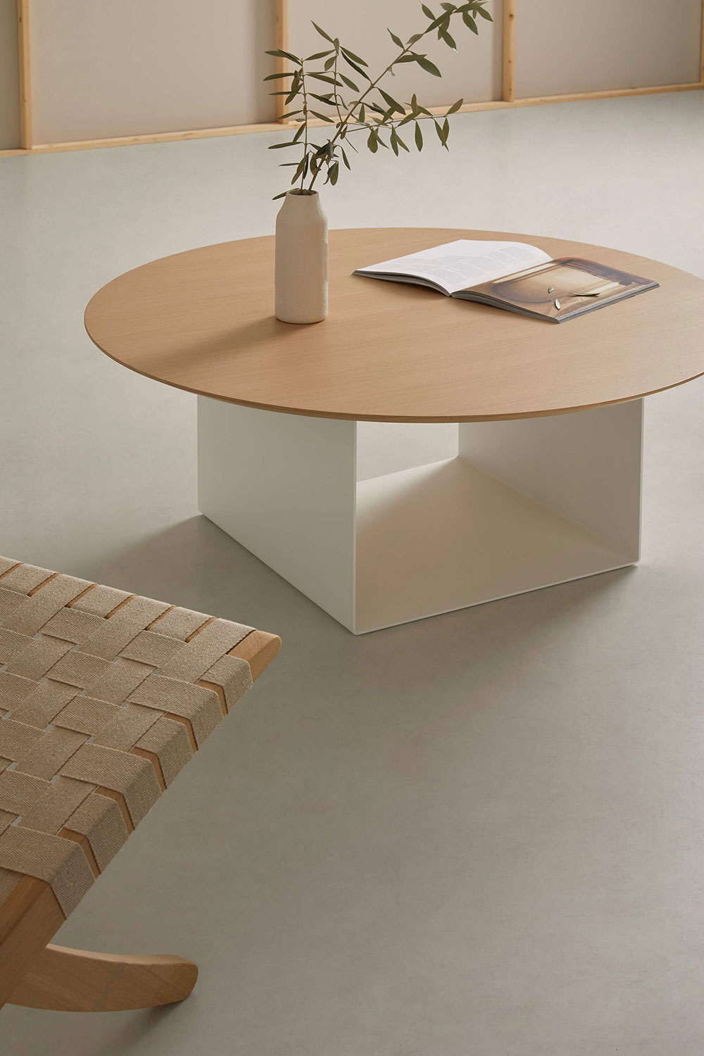 The coffee and side table collection Reflex is composed of a circular top and a metal base. It proposes a visual play between two geometries, volumes and planes that allow it to adapt perfectly to its surroundings.