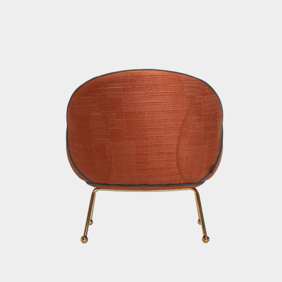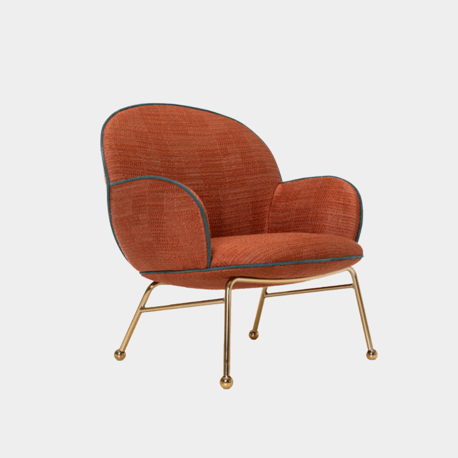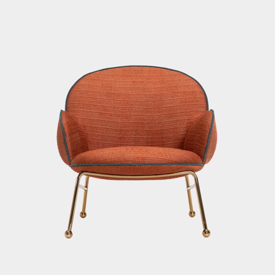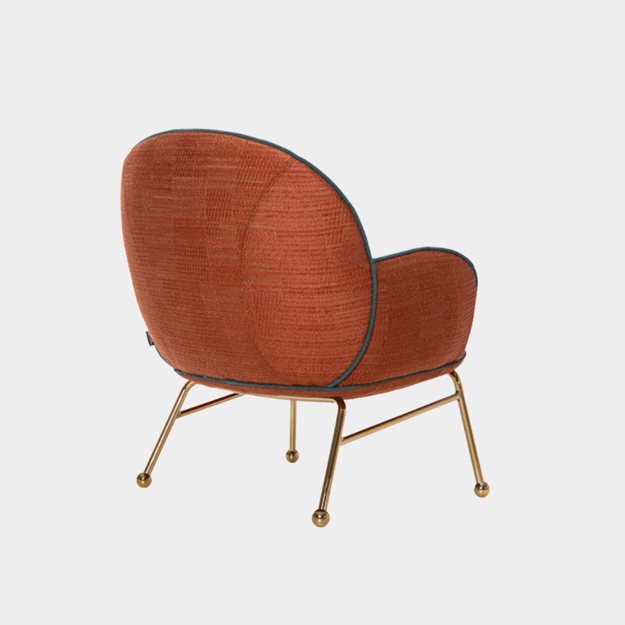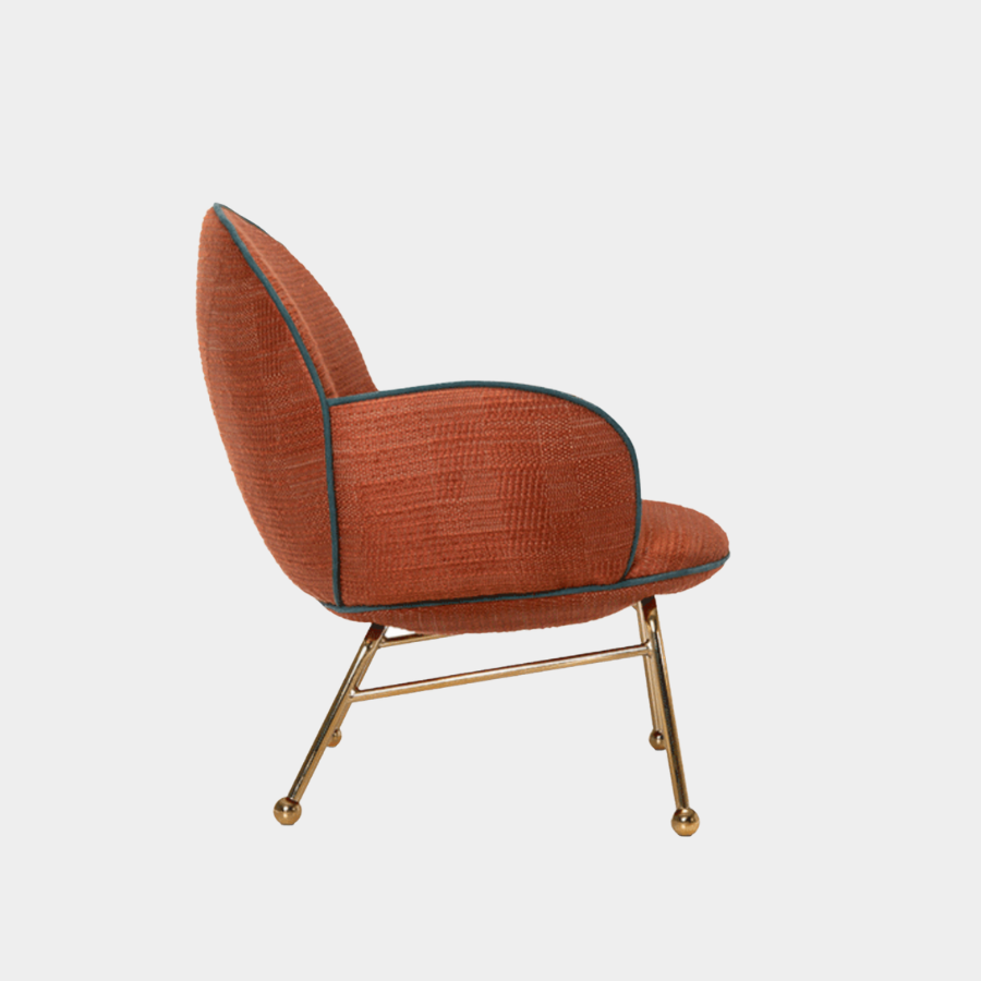 Customisation is at the heart of the Round Armchair Low. You can personalise your piece by selecting from various upholstery options, trims, and colour finishes for the metal frame, ensuring that it perfectly fits your style and space.