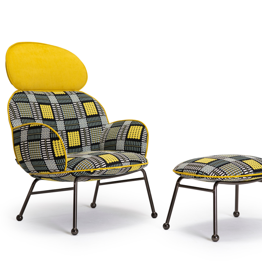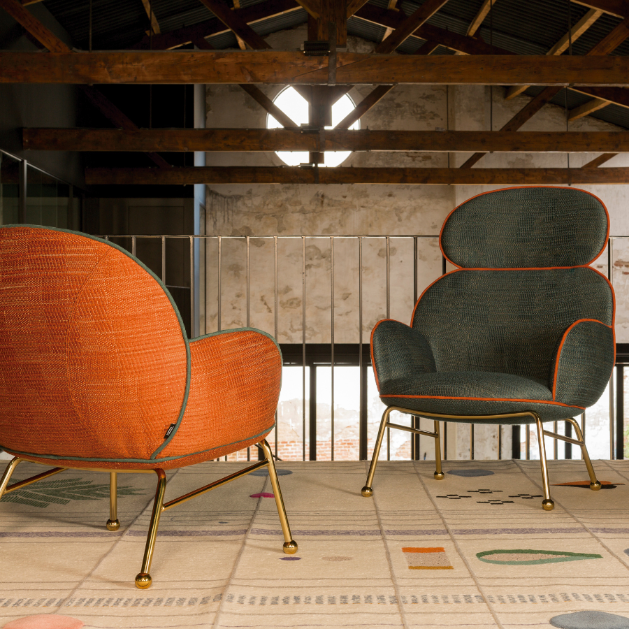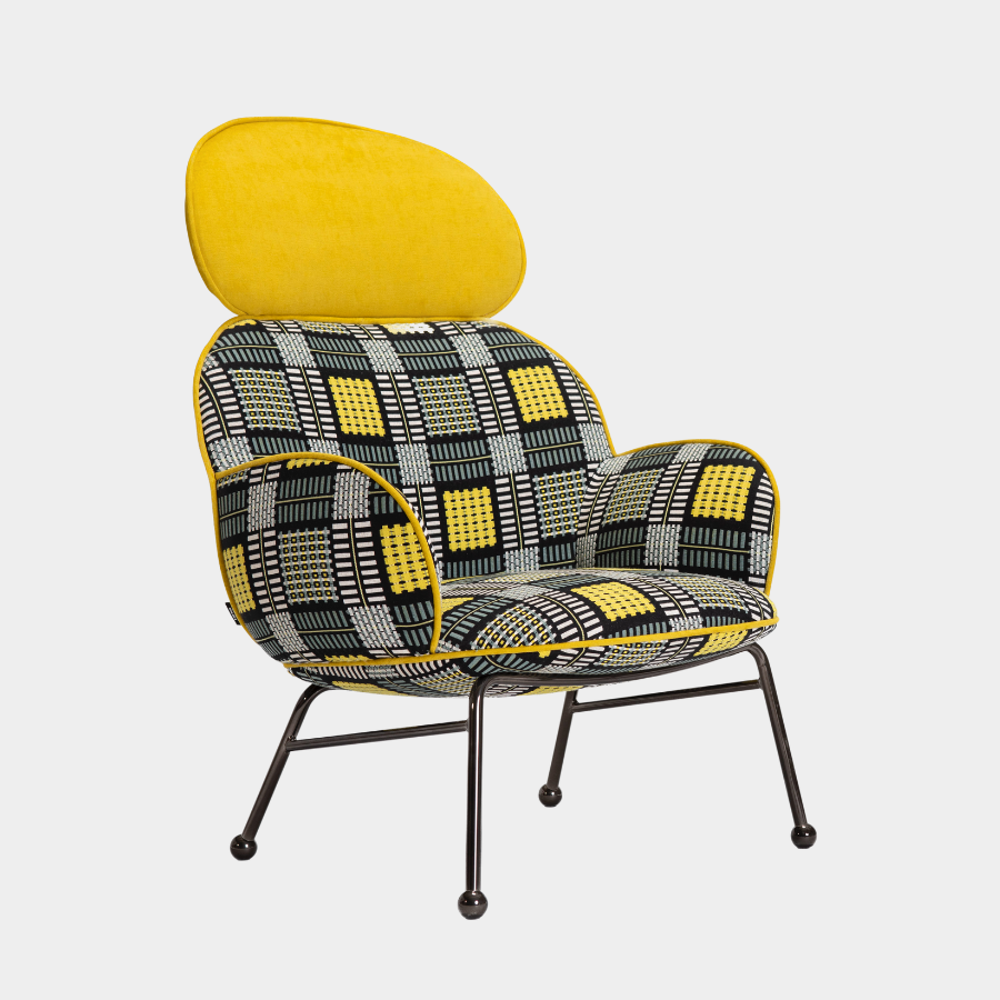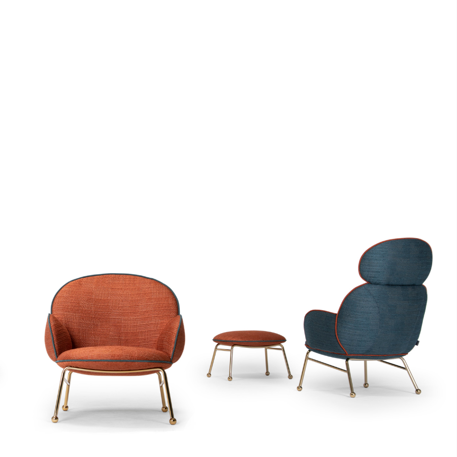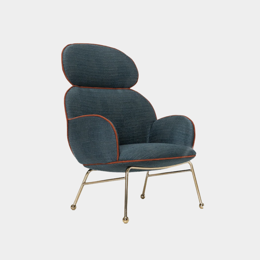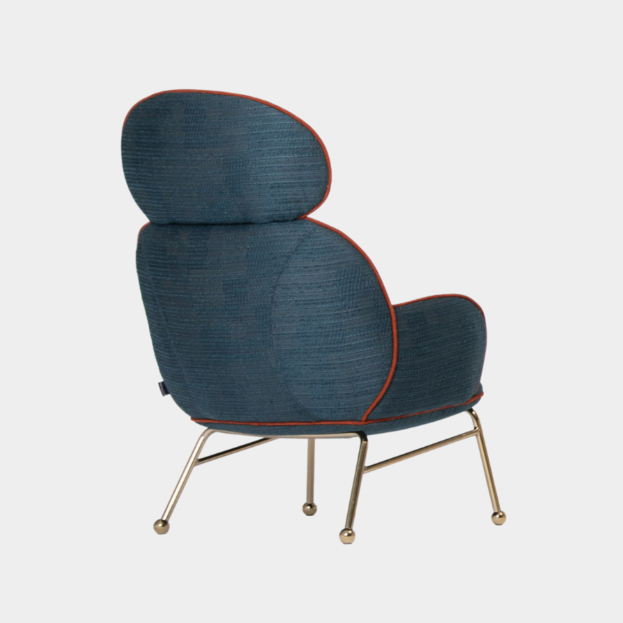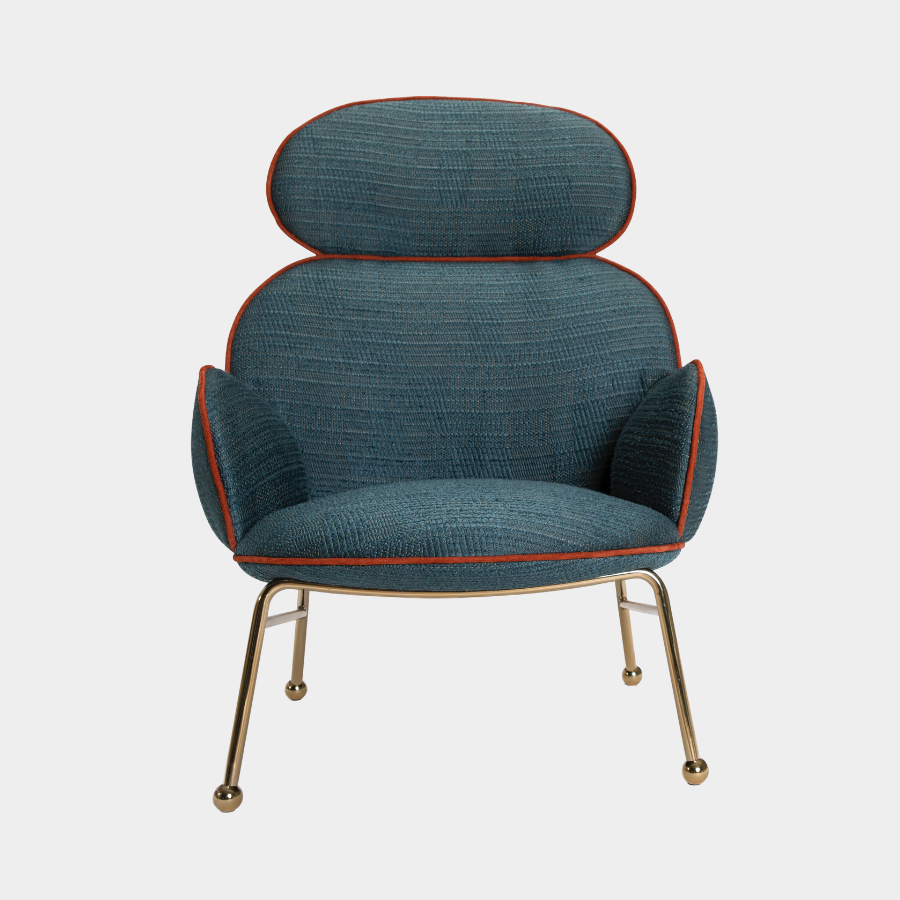 The Round Armchair offers extensive customisation options, allowing you to personalise the upholstery, trims, and metal frame finishes to suit your style. The high-back version features an iron frame ending in steel spheres with felt stops, while the seat, backrest, and arms are generously upholstered with foam over a wooden structure. The piping seam is upholstered in a contrasting color, adding a touch of elegance to this versatile piece.