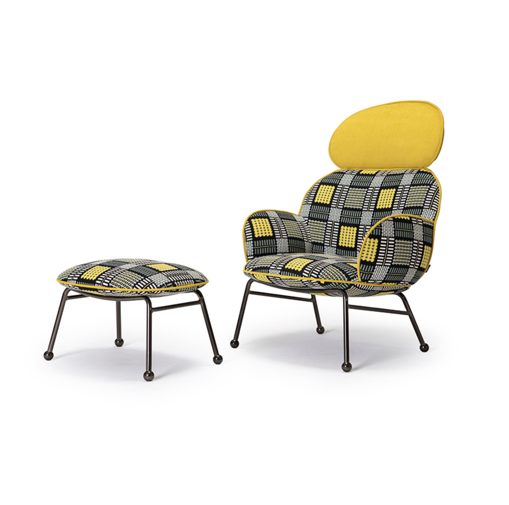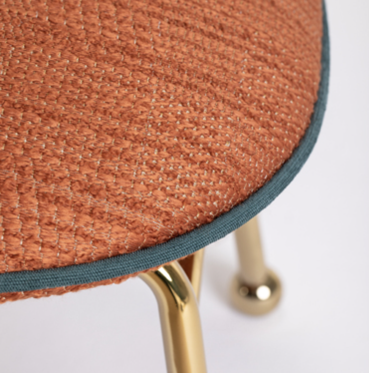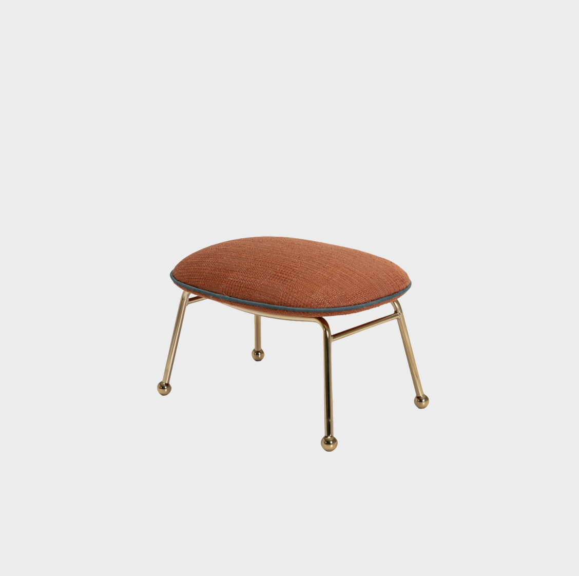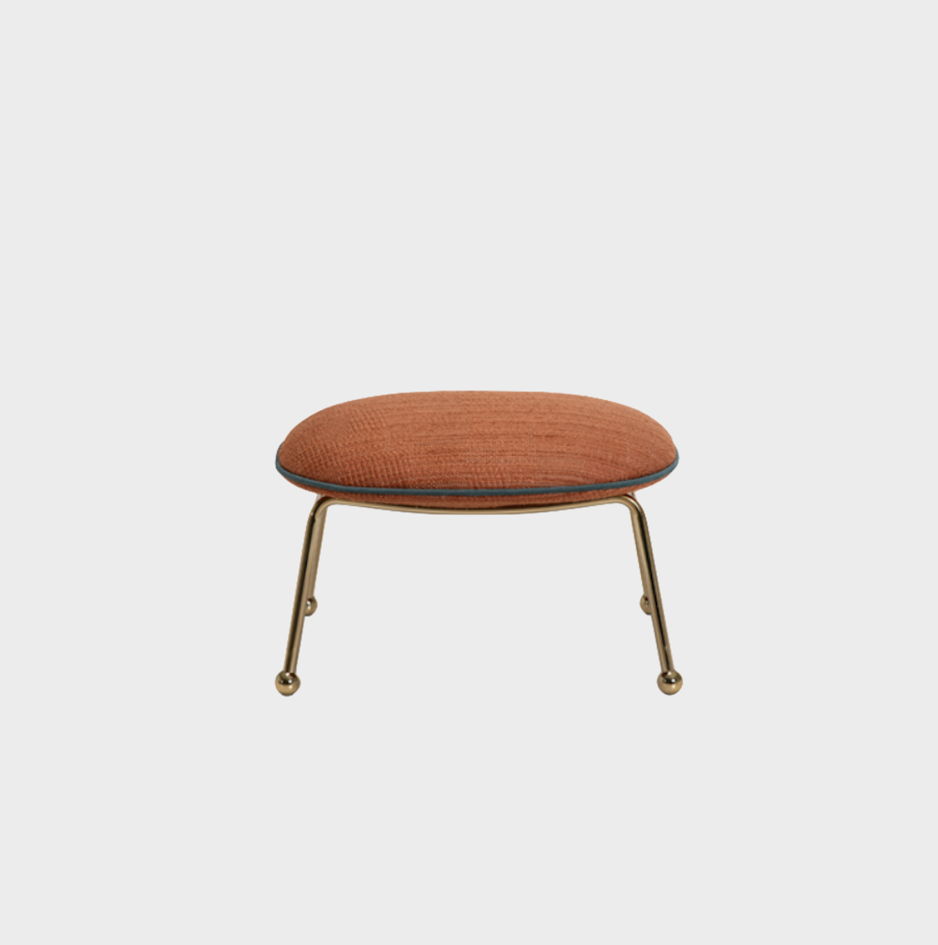 Ottoman stool complementing the Round Armchairs adding comfort to the collection. You can personalise it by choosing from different upholsteries, trims and colour finishes for the metal frames.