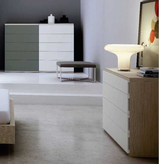 The sober nature of Serena and its balanced character contribute to creating peaceful ambiances, so encouraging rest. The vertical position of the side grooves cut into the sides of the drawers and the contrasting thicknesses of the base and the surface compared with the sides of the piece are the details that best express its character.