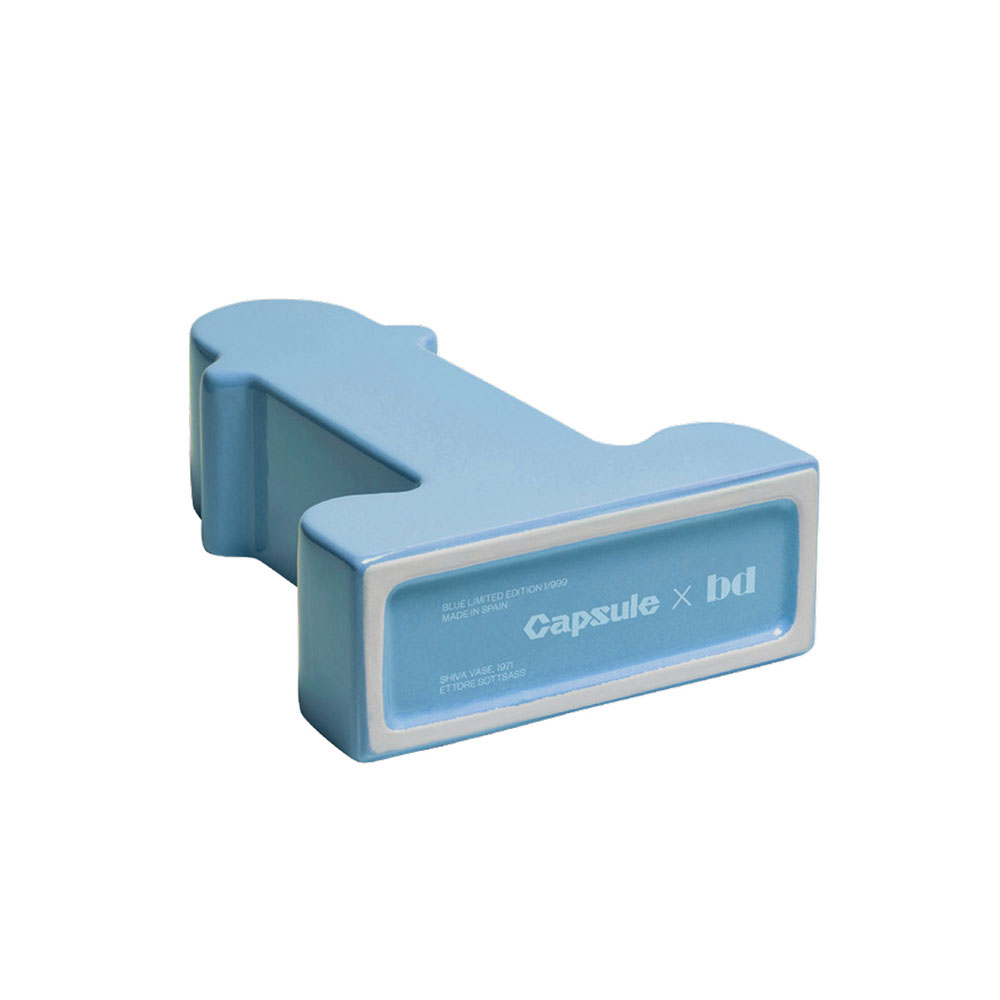 The Shiva vase was designed by Ettore Sottsass when he was travelling to Barcelona for love in 1971. It captures the essence and cultural vision of the bold and provocative Radical Design movement in Italy in the early 1970s.Capsule Global pays homage to the same boundary-pushing and experimental movement, and collaborates with BD for a special edition of the Shiva. The clean symmetry and bright colour plays across the form with a brilliant glaze in Capsule Blue.