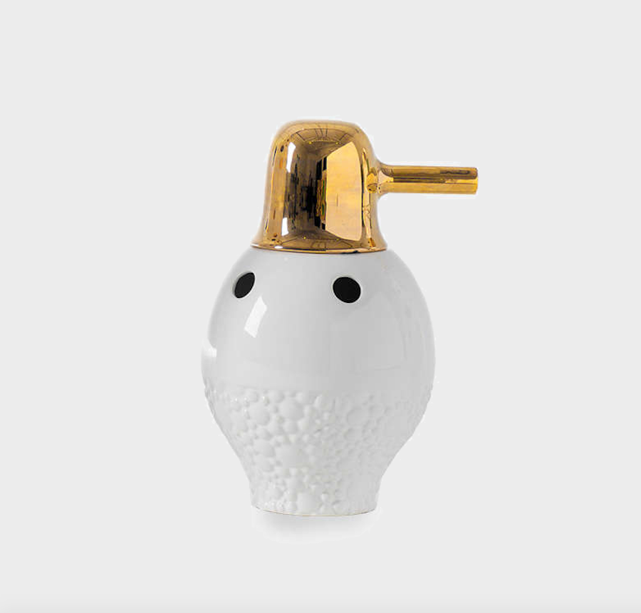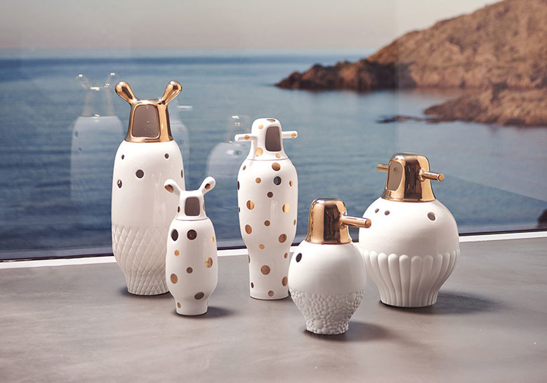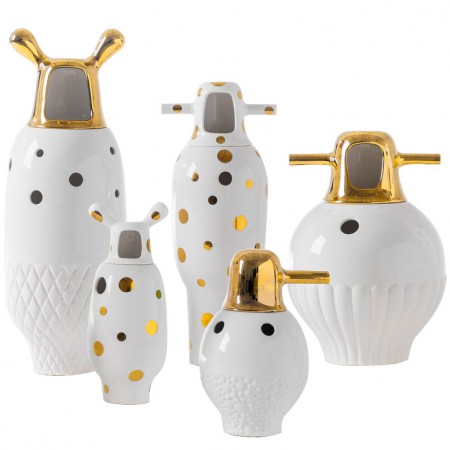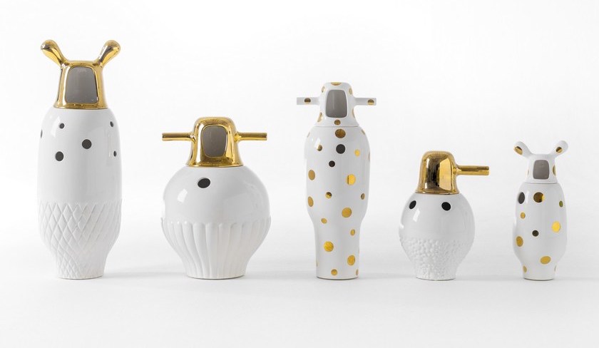 Crafted from glazed stoneware, each piece in the collection features a timeless white finish adorned with 24-carat gold-plated details, adding a layer of luxury to its bold sculptural design. The result is a vase that exudes sophistication while retaining Hayon’s signature playful aesthetic.