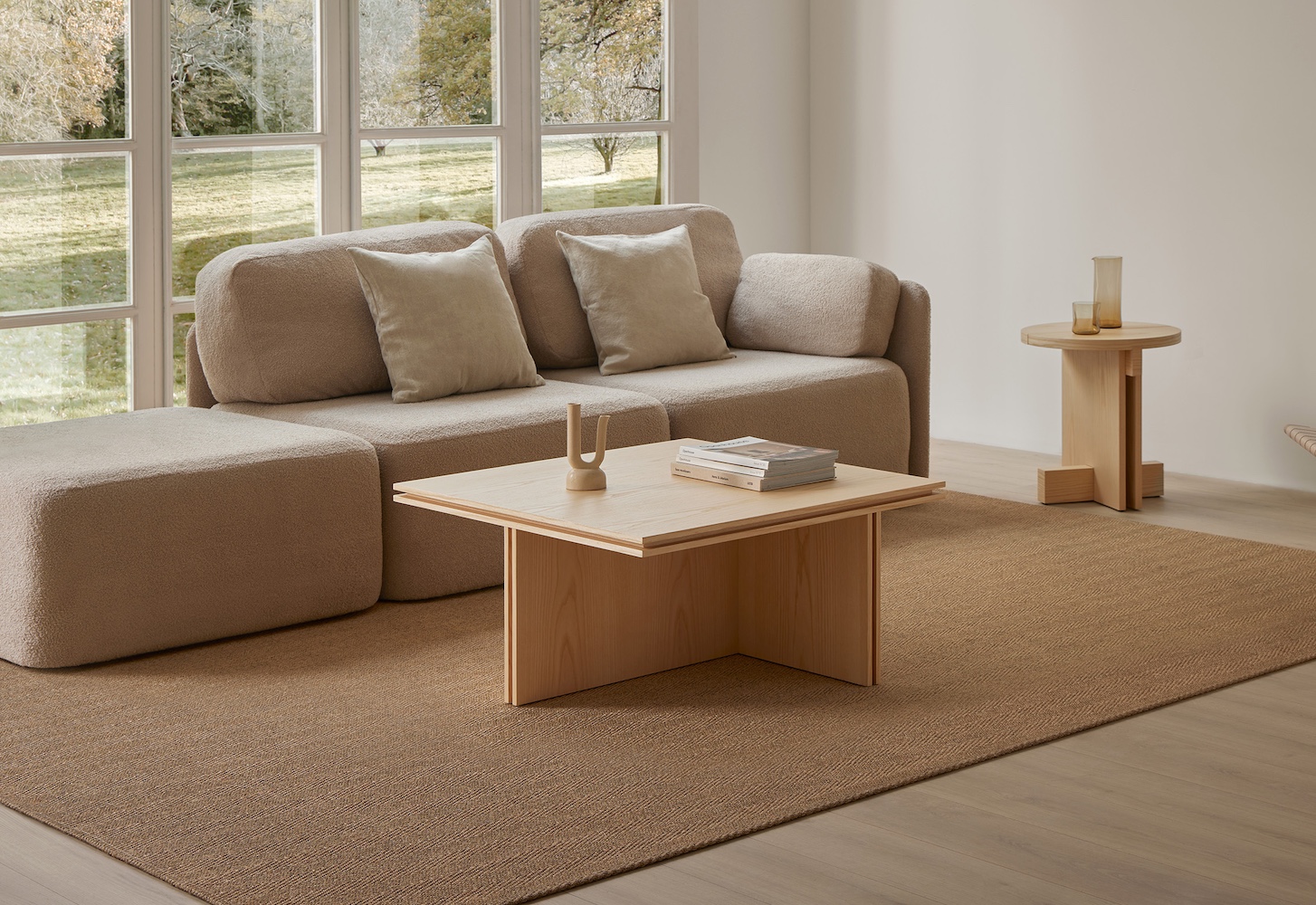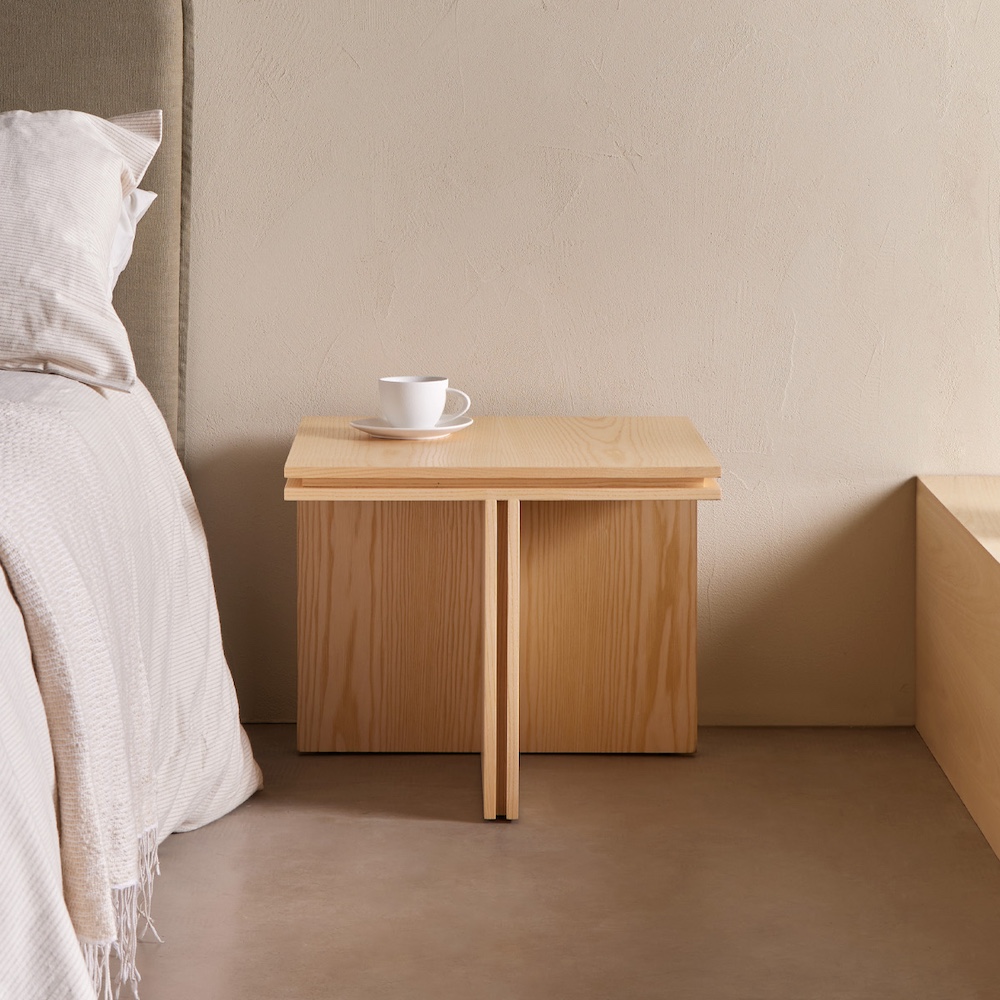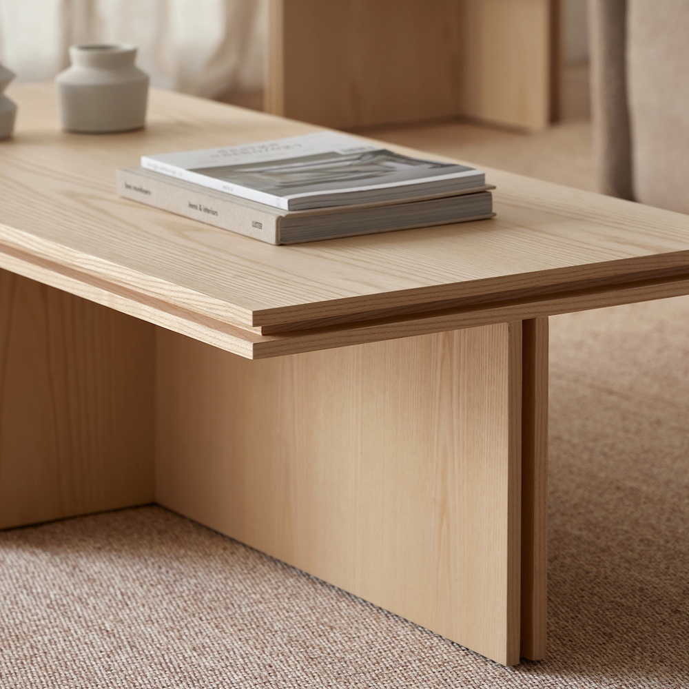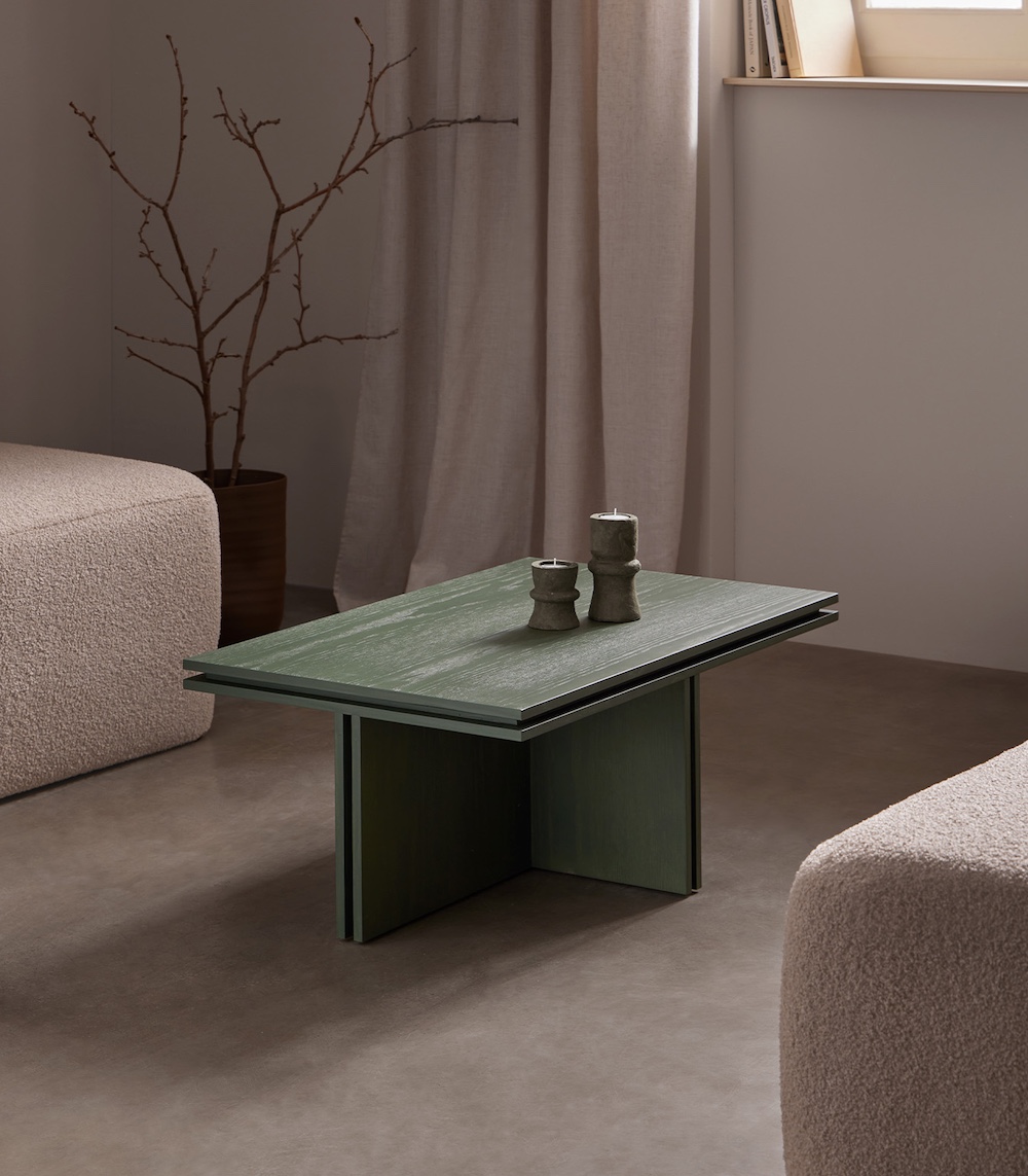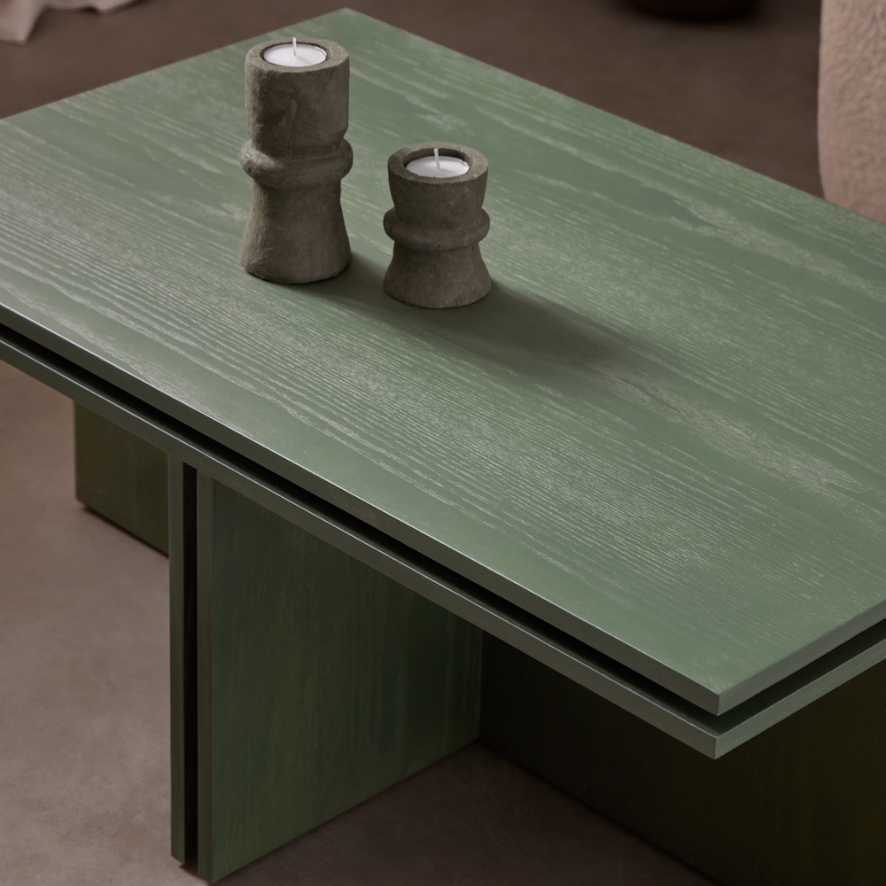 Collection of tables, meticulously handcrafted, are made from MDF boards veneered in ash wood. The symmetry of the geometry is complemented by the rich texture of ash, which is available in natural, ash, toasted, black, green or blue.