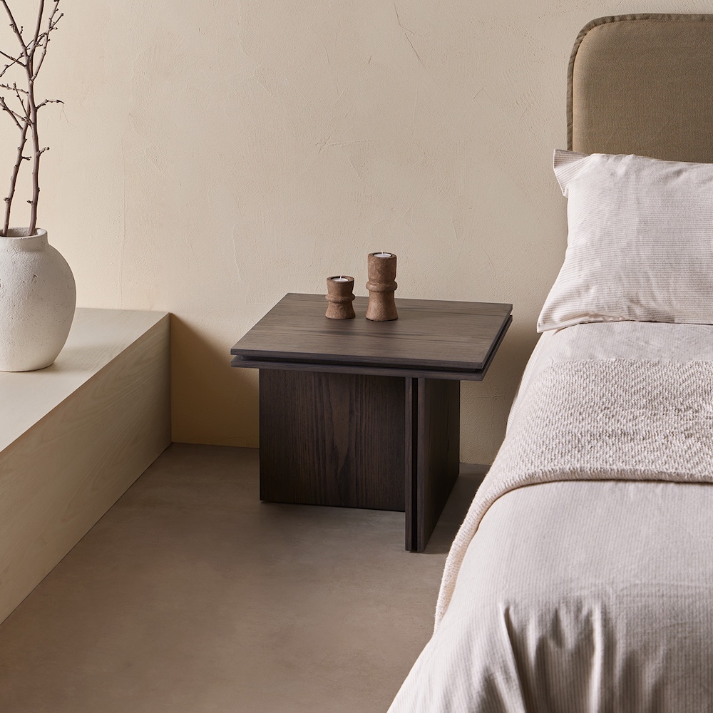 Through the simplicity that defines the work of Francesc Rifé’s studio, the geometric discourse of this new proposal of side tables and center is built. A refined design, marked by the detail of the double line, which creates a very special relationship between the legs and the wooden top, available in rectangular or square.