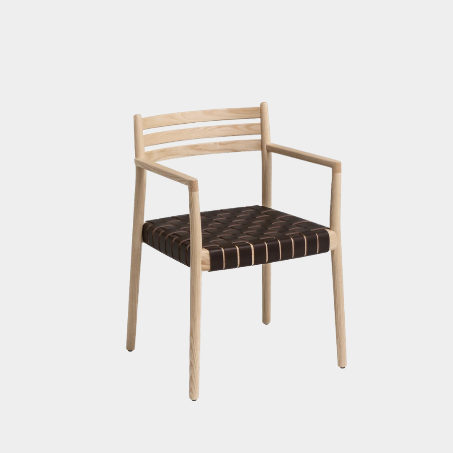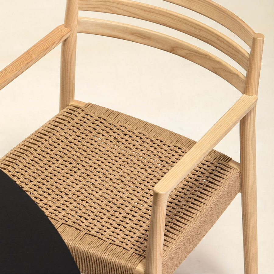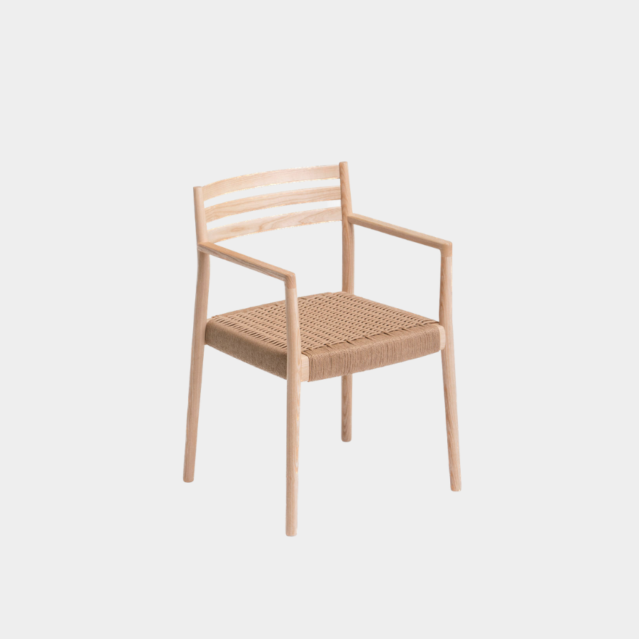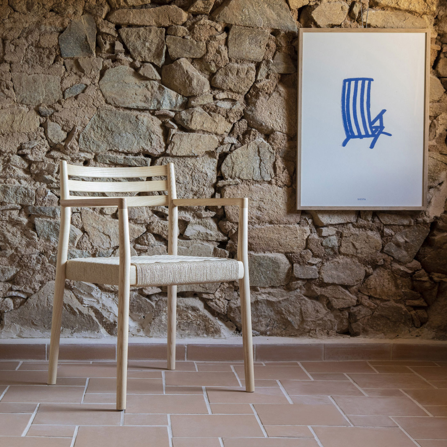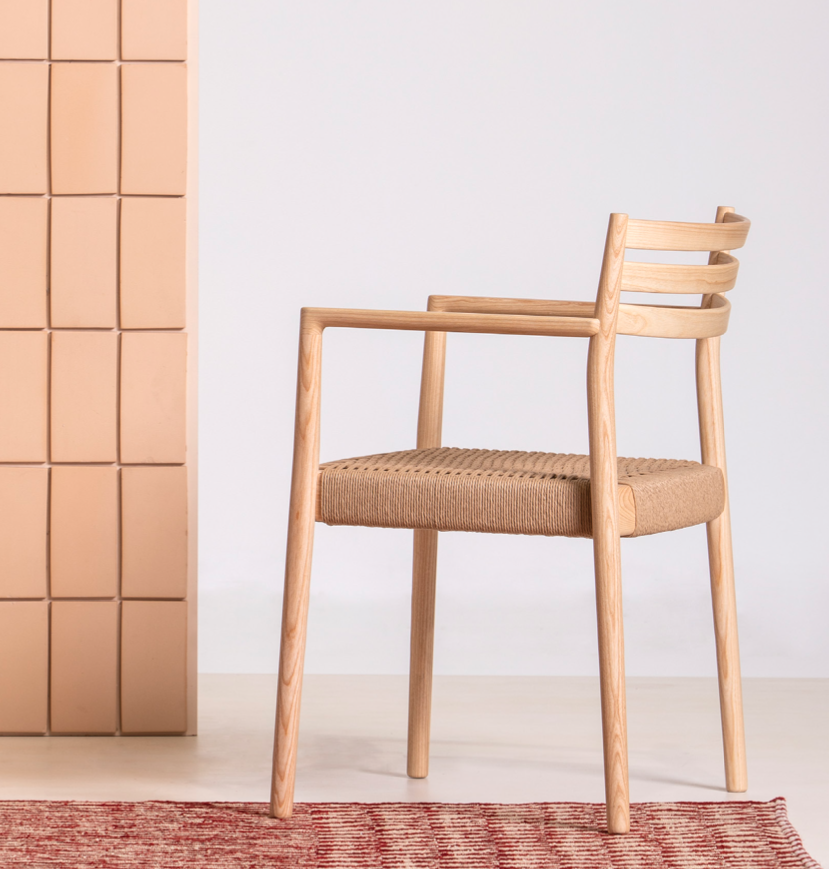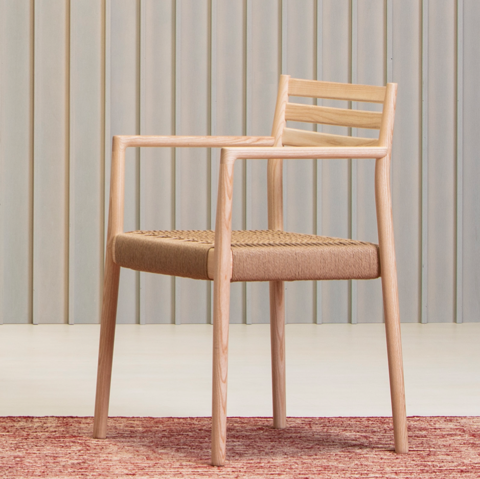 The Bogart Chair With Arms, designed by Estudi Manel Molina for Vergés, offers a contemporary reinterpretation of the traditional enea chair.