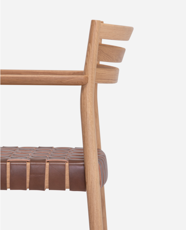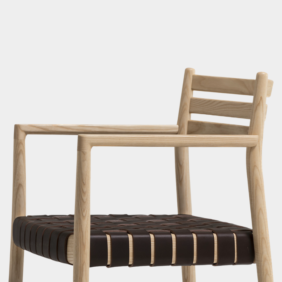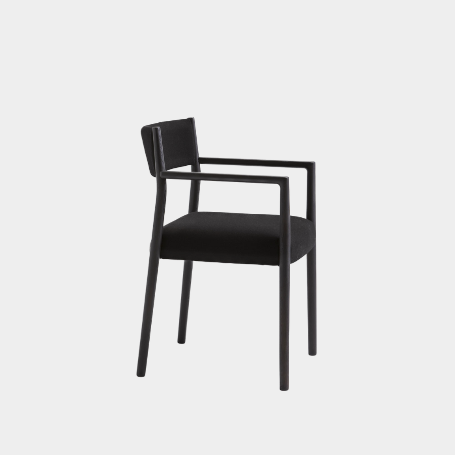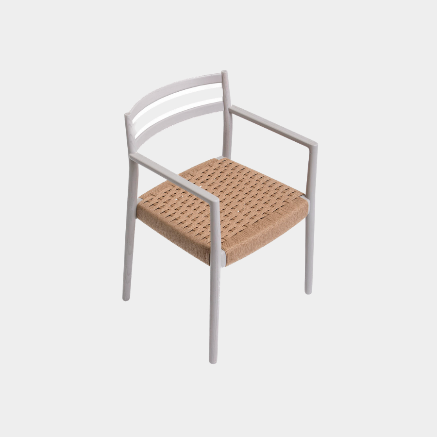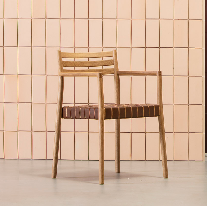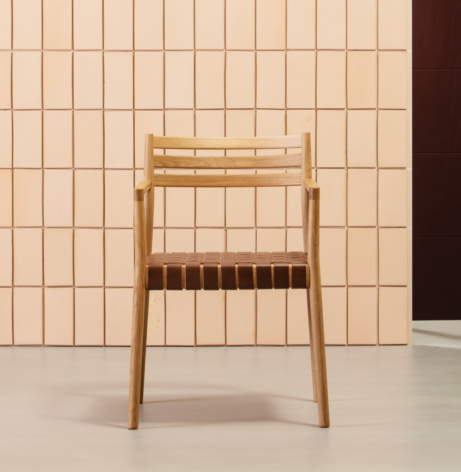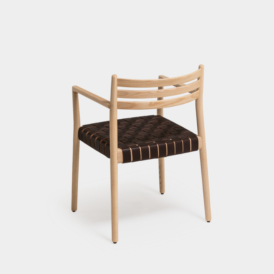 The Bogart Chair With Arms, designed by Estudi Manel Molina for Vergés, offers a contemporary reinterpretation of the traditional enea chair.
