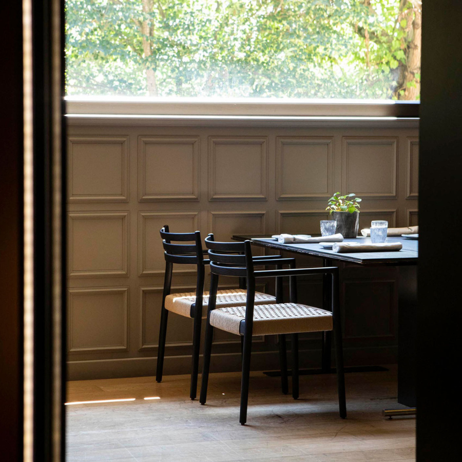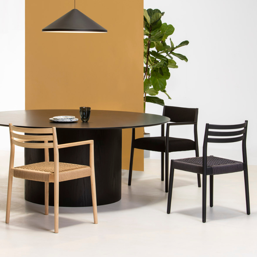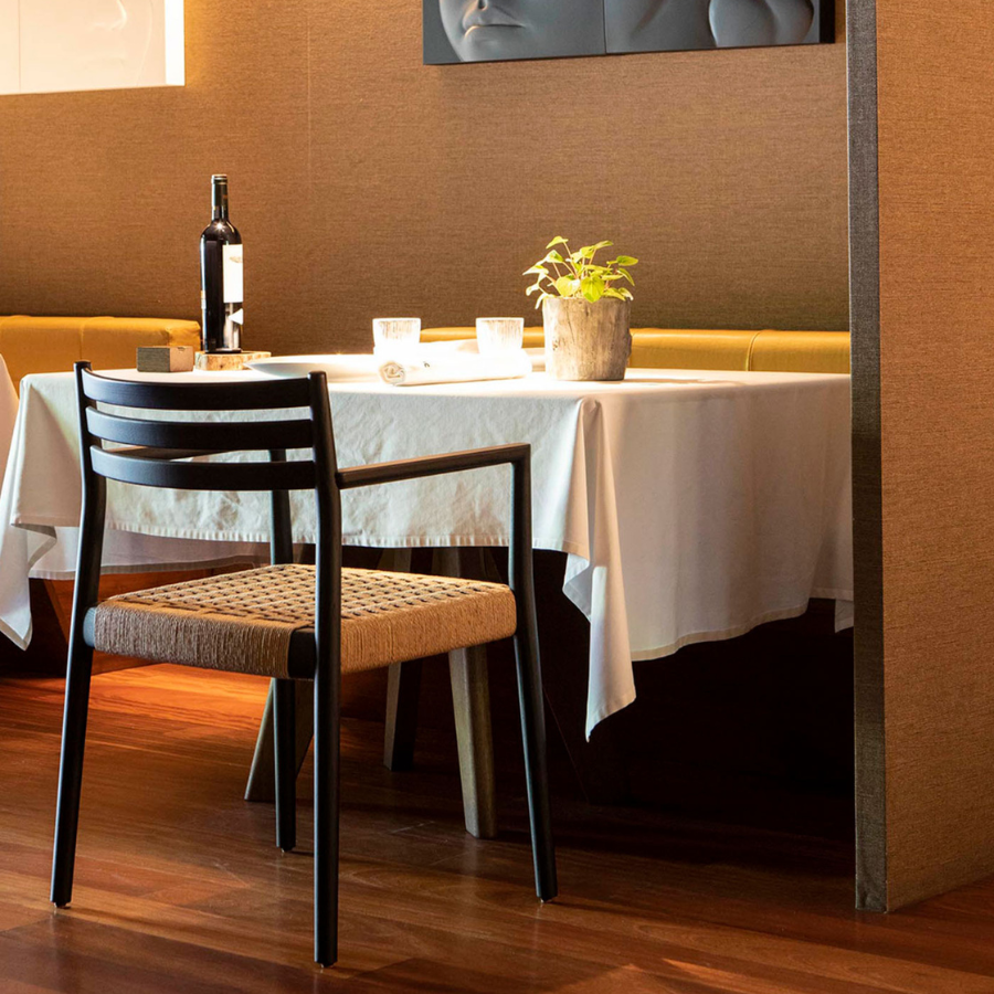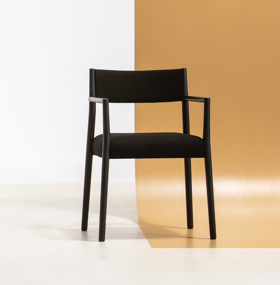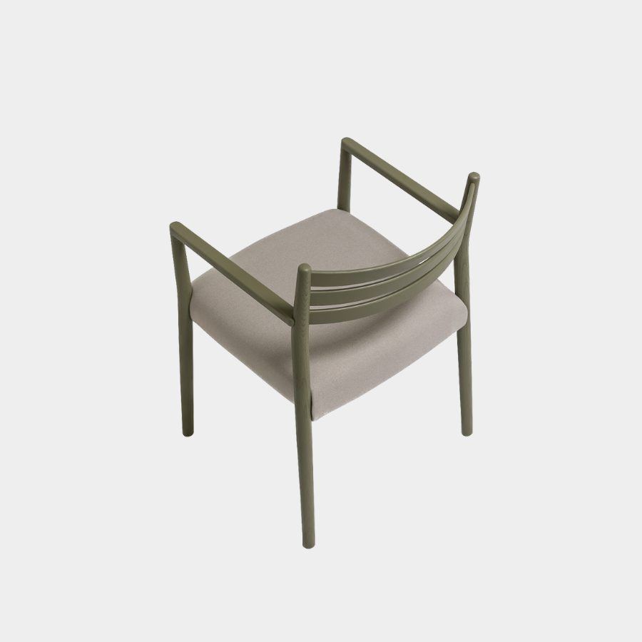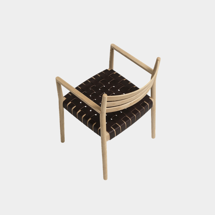 The Bogart Chair With Arms, designed by Estudi Manel Molina for Vergés, offers a contemporary reinterpretation of the traditional enea chair.