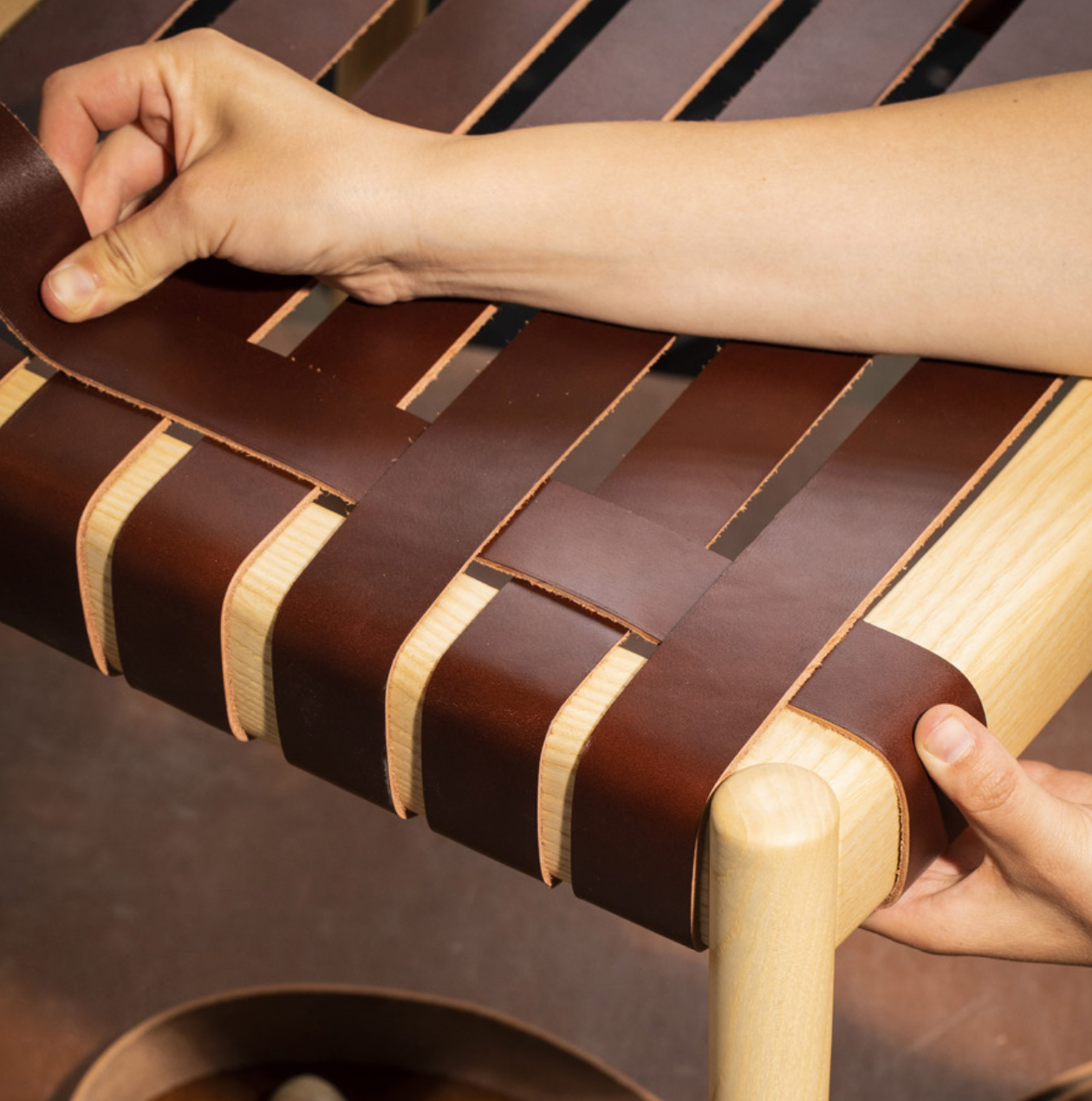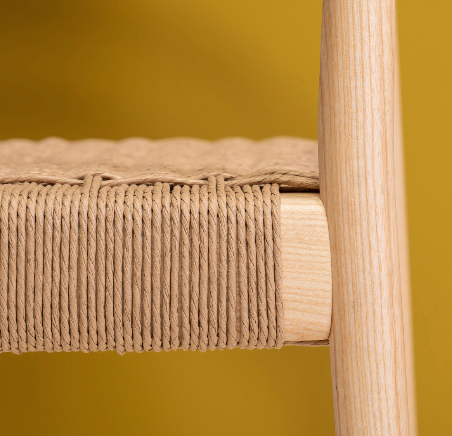 Seat in either paper cord weave, webbing with acrylic tape, webbing with recycled leather, or upholstered in a range of fabrics supplied by Vergés.