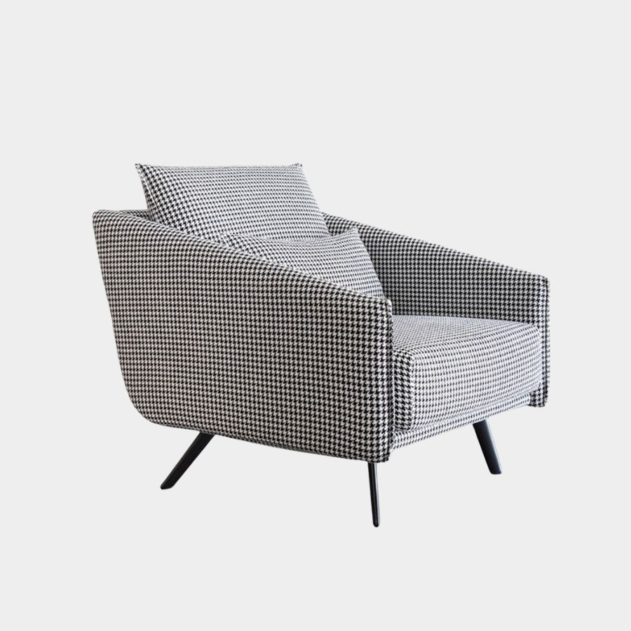 The frame of the armchair is made of thin, gently bent plywood. A strong, elegant and space- saving solution. The seat of Costura is made with different layers of foam that include memory-foam for a great comfort.