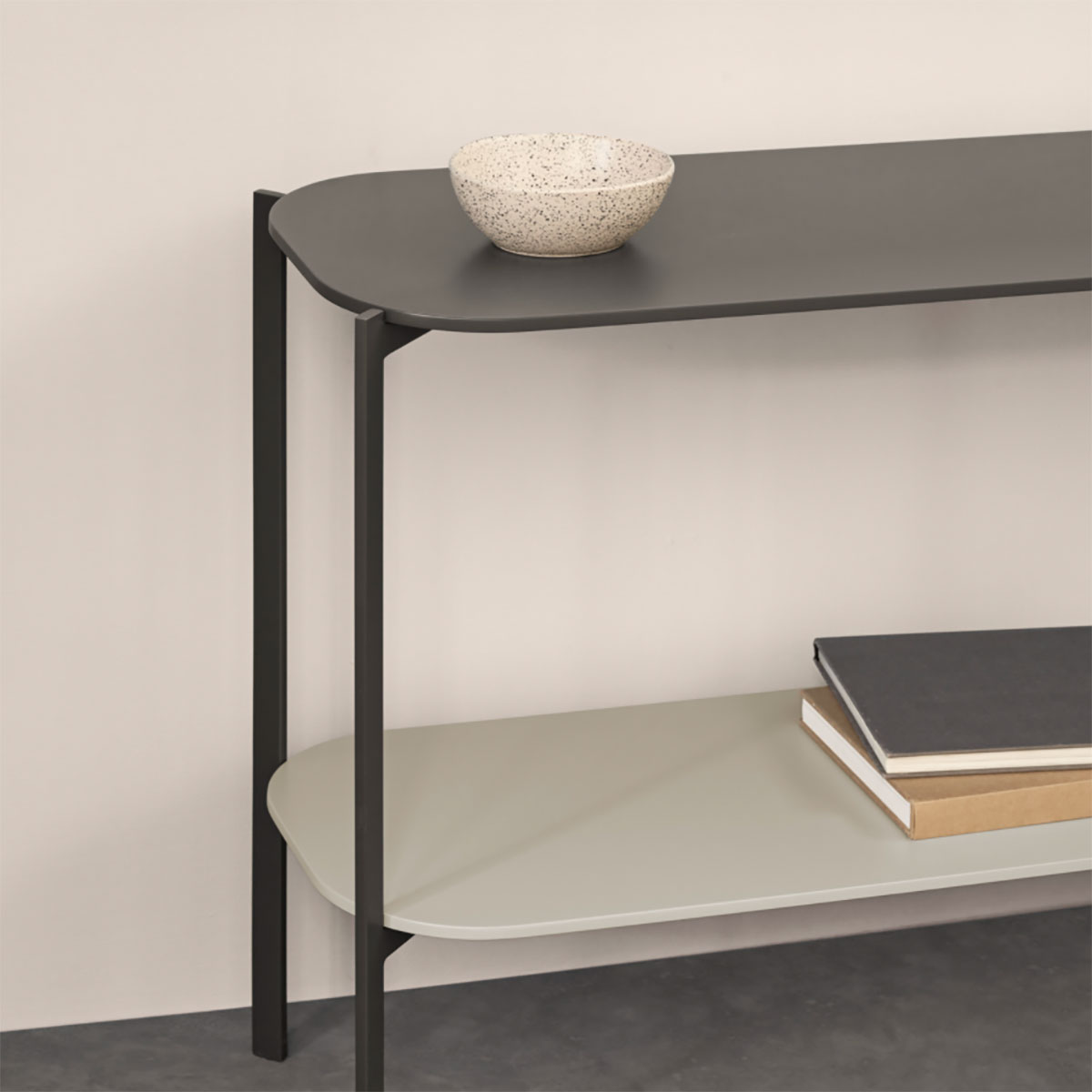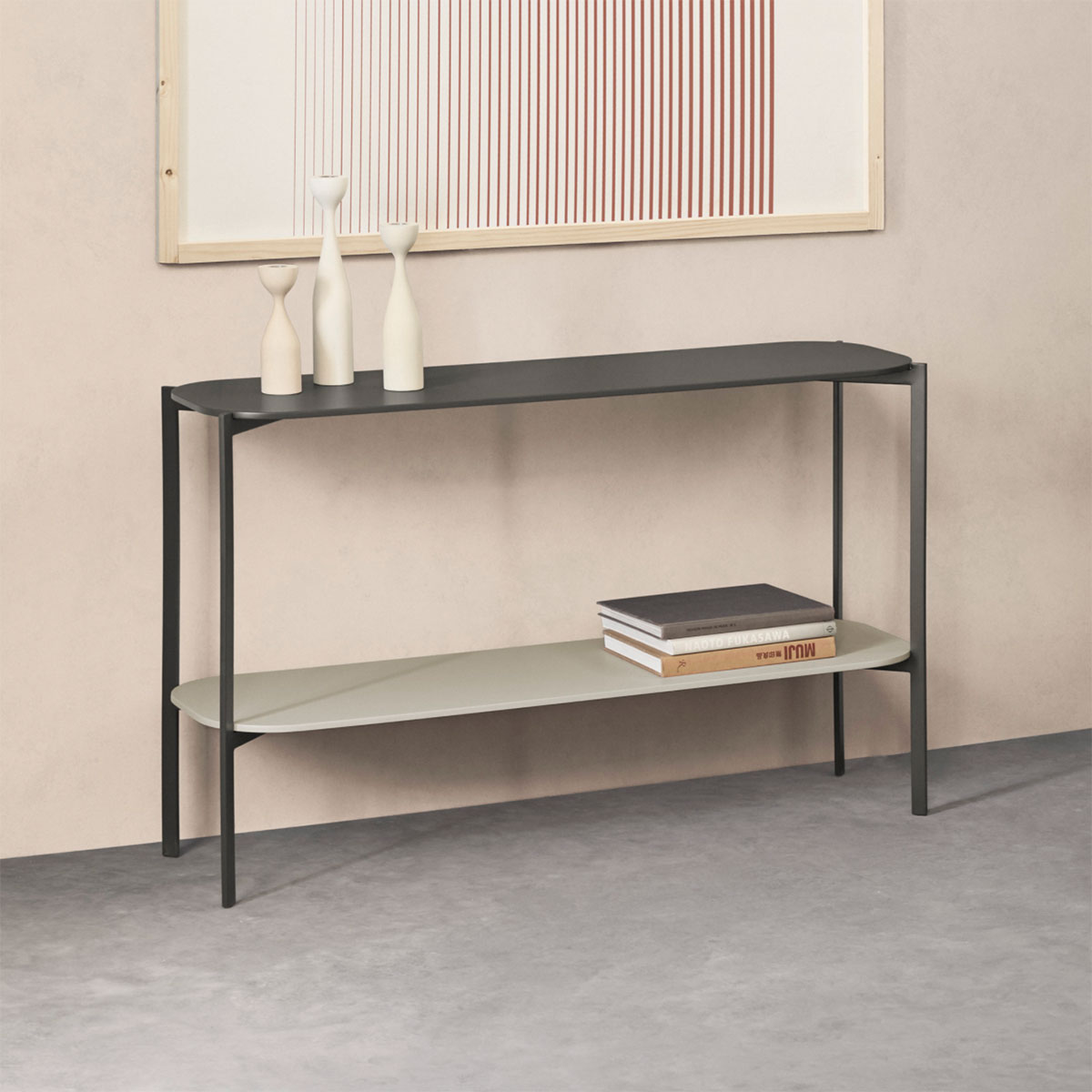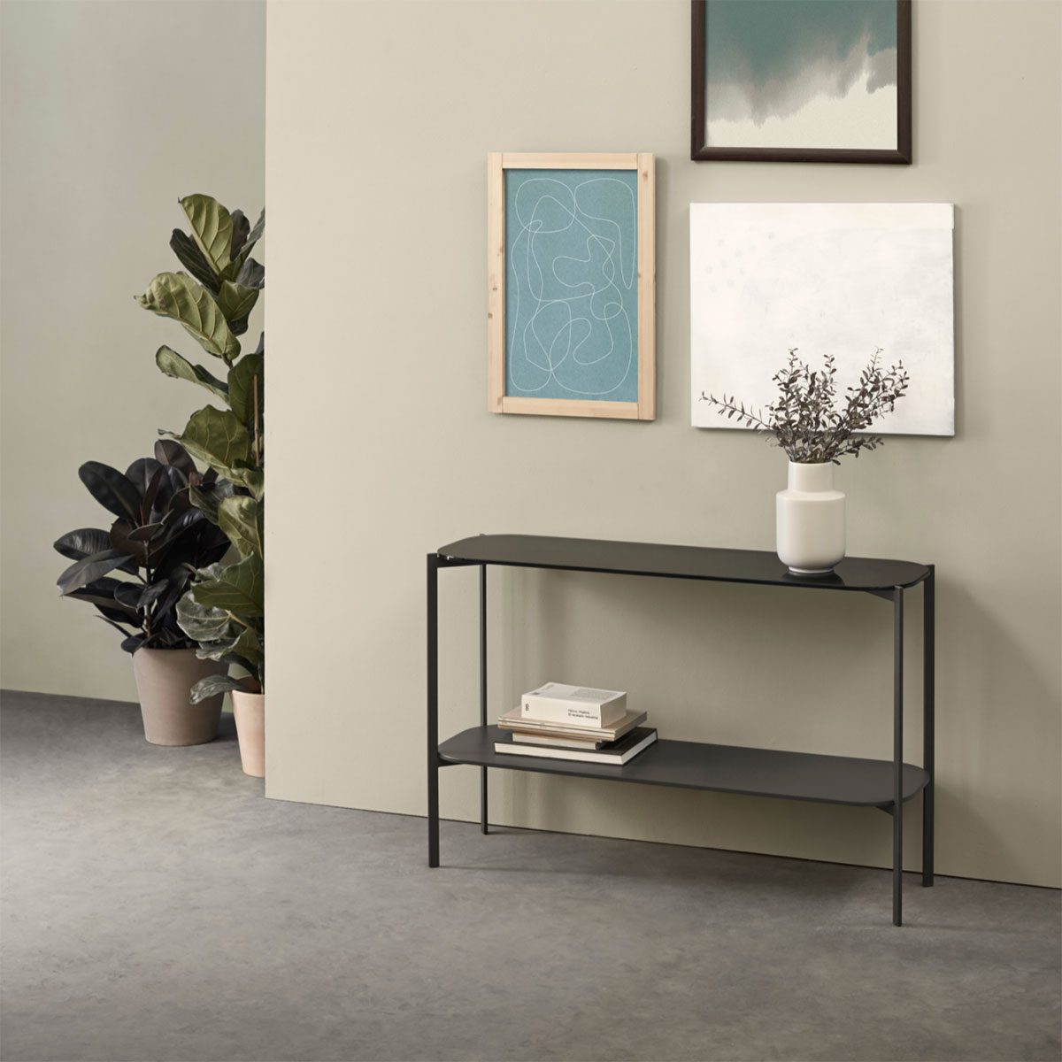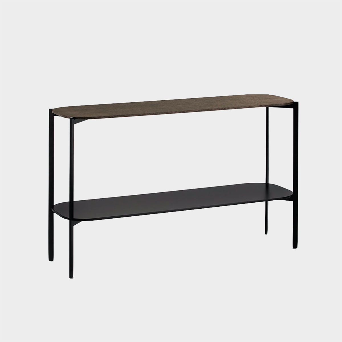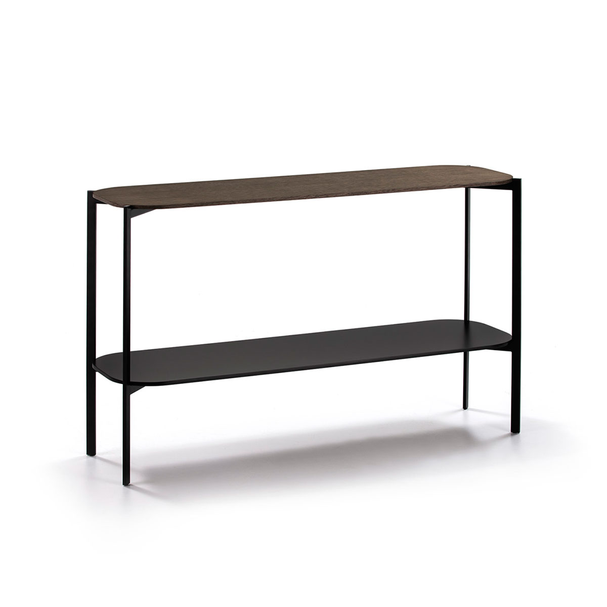 The EXO console is characterised by a metal structure that forms an essential part of the design. Its perfect combination with the materials of the top and the shelf create an elegant and unique ensemble.