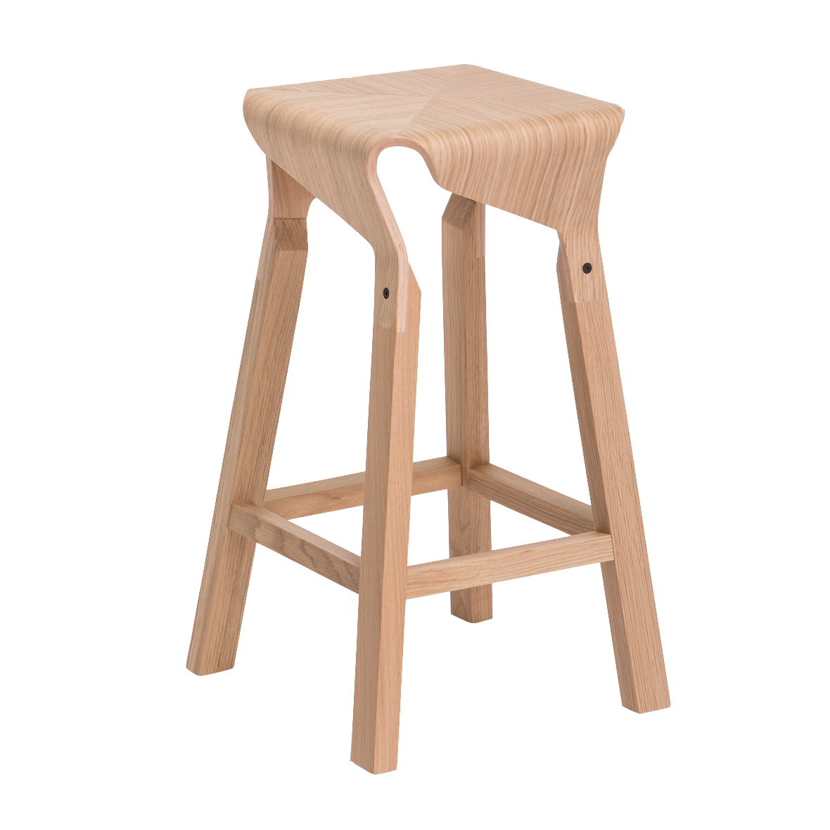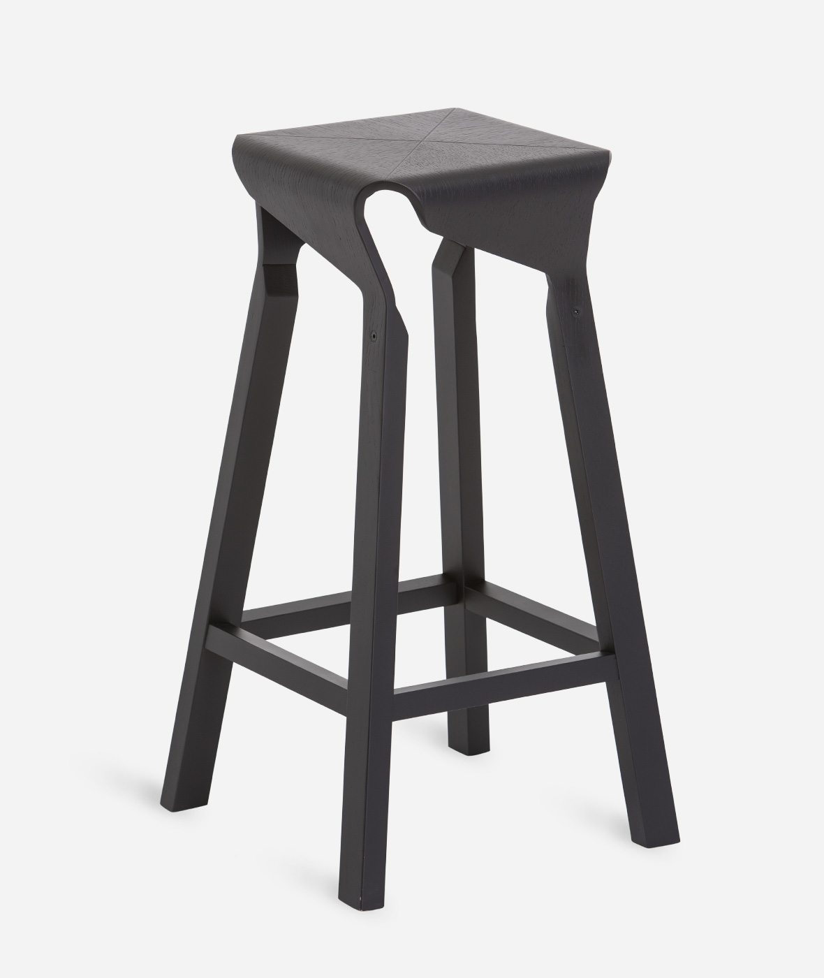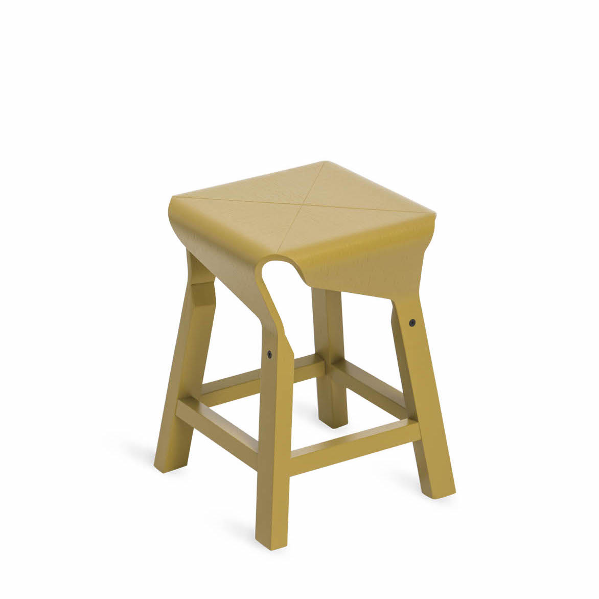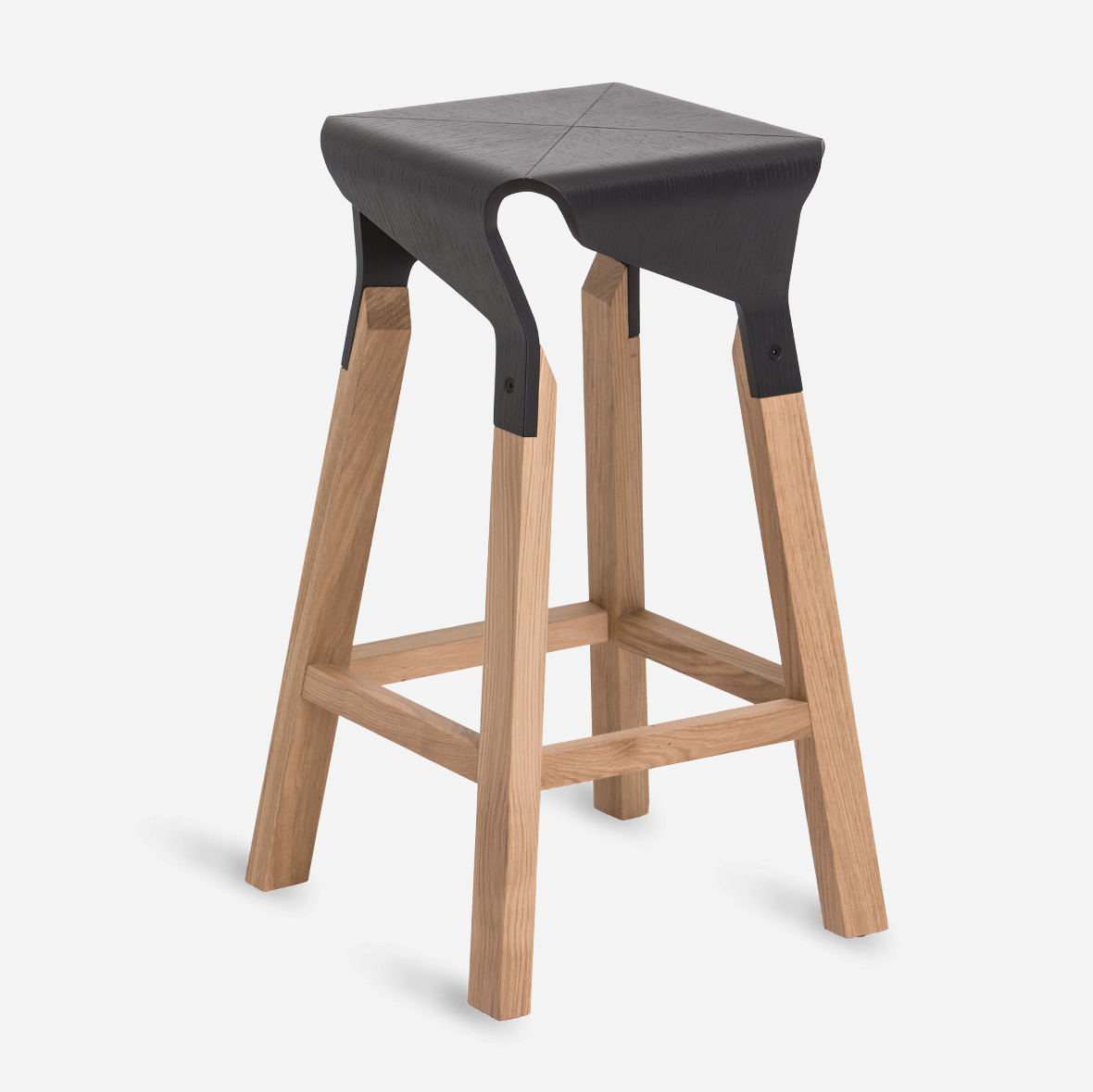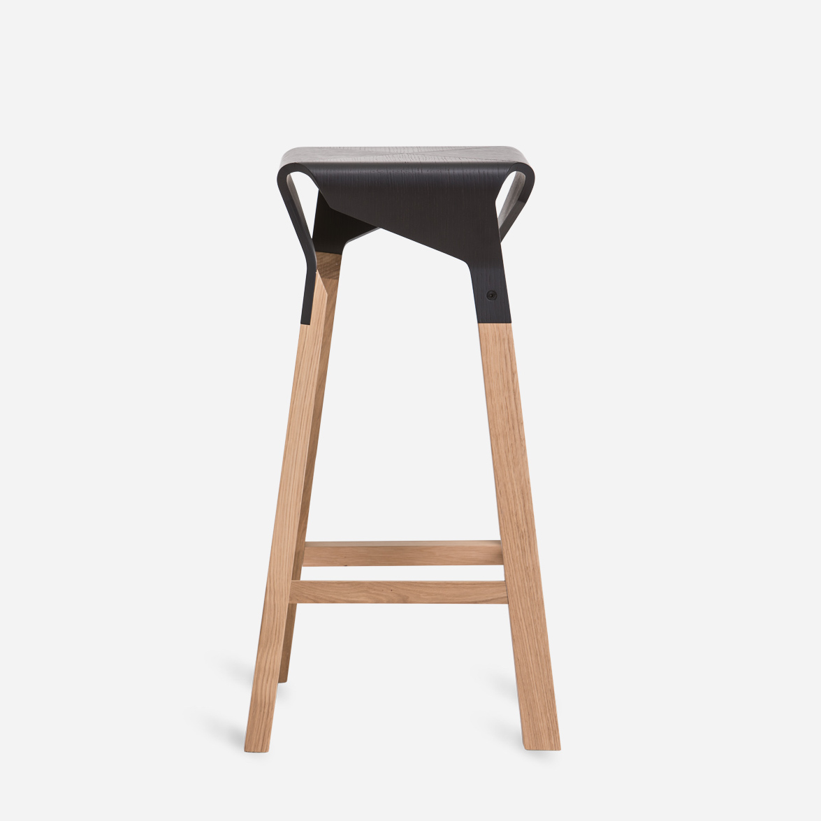 A collection of stools that explores the expressive and structural potential of bent plywood. The Naoshima stool combines four identical pieces to build the seat, the prolongation of which connects with the legs made of solid wood, creating a solid and stable stool.