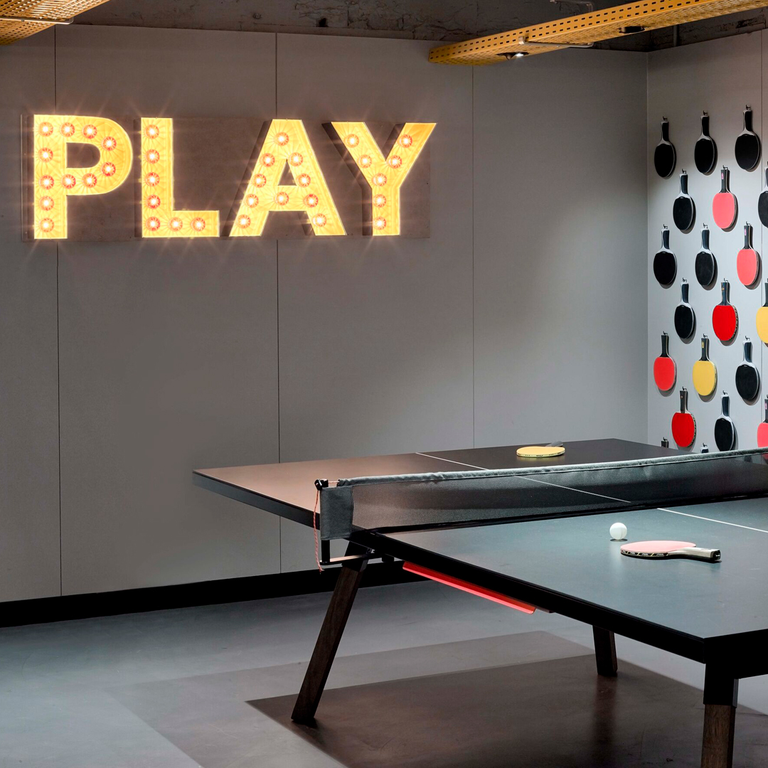You and Me contains all the moments you can imagine. It’s a ping pong table like you’ve never seen before, and it’s also a table with sleek, minimalist lines that suits any interior but really comes into its own in outdoor settings. When not in use, all the sporting elements – the net, the paddles and the balls – are stored in a discreet side drawer, completely out of sight. And the table is ready for other uses.